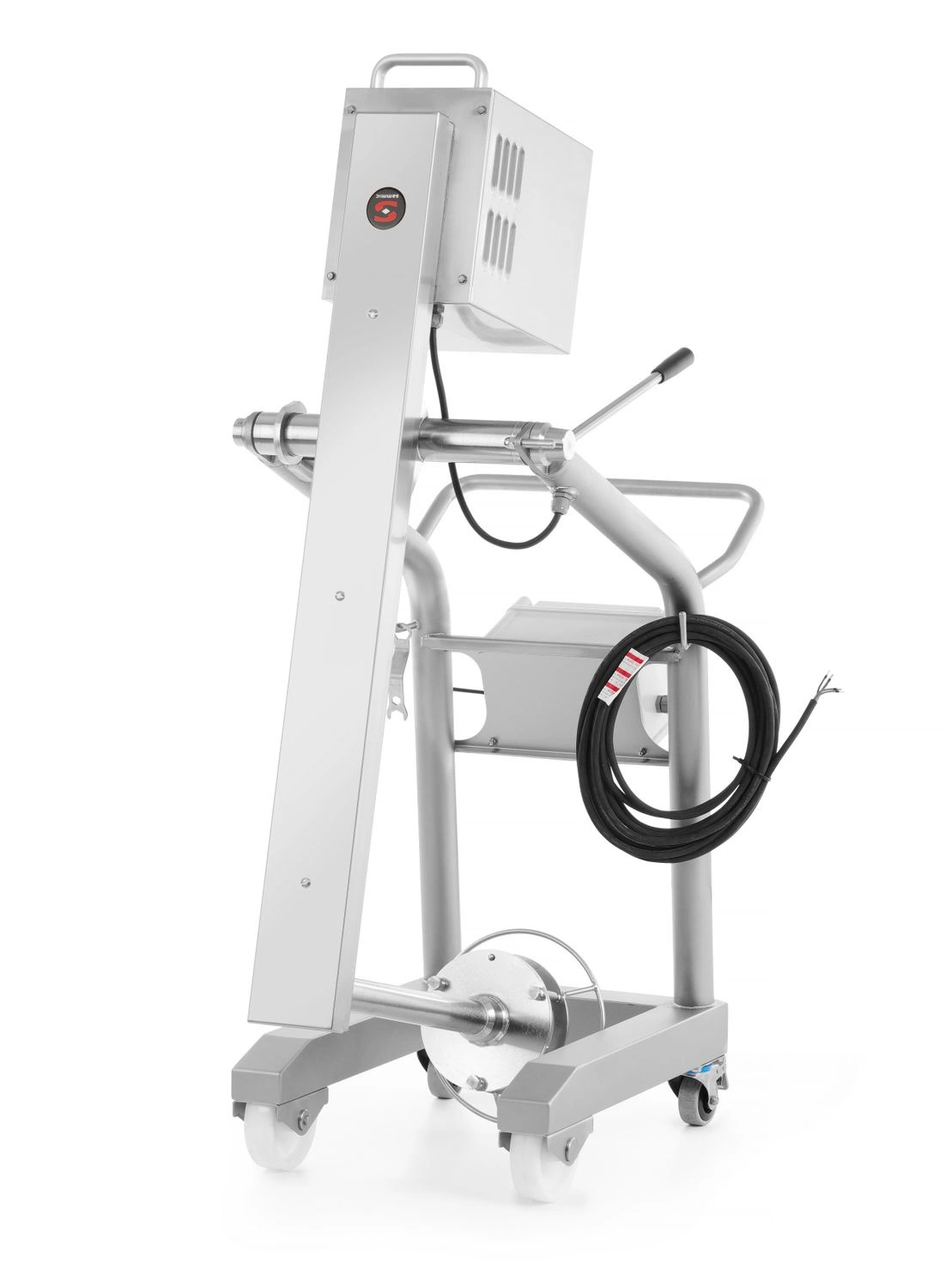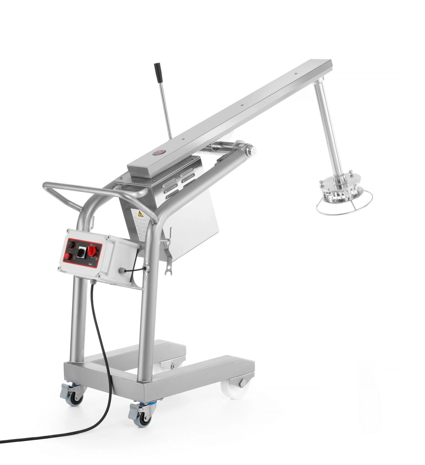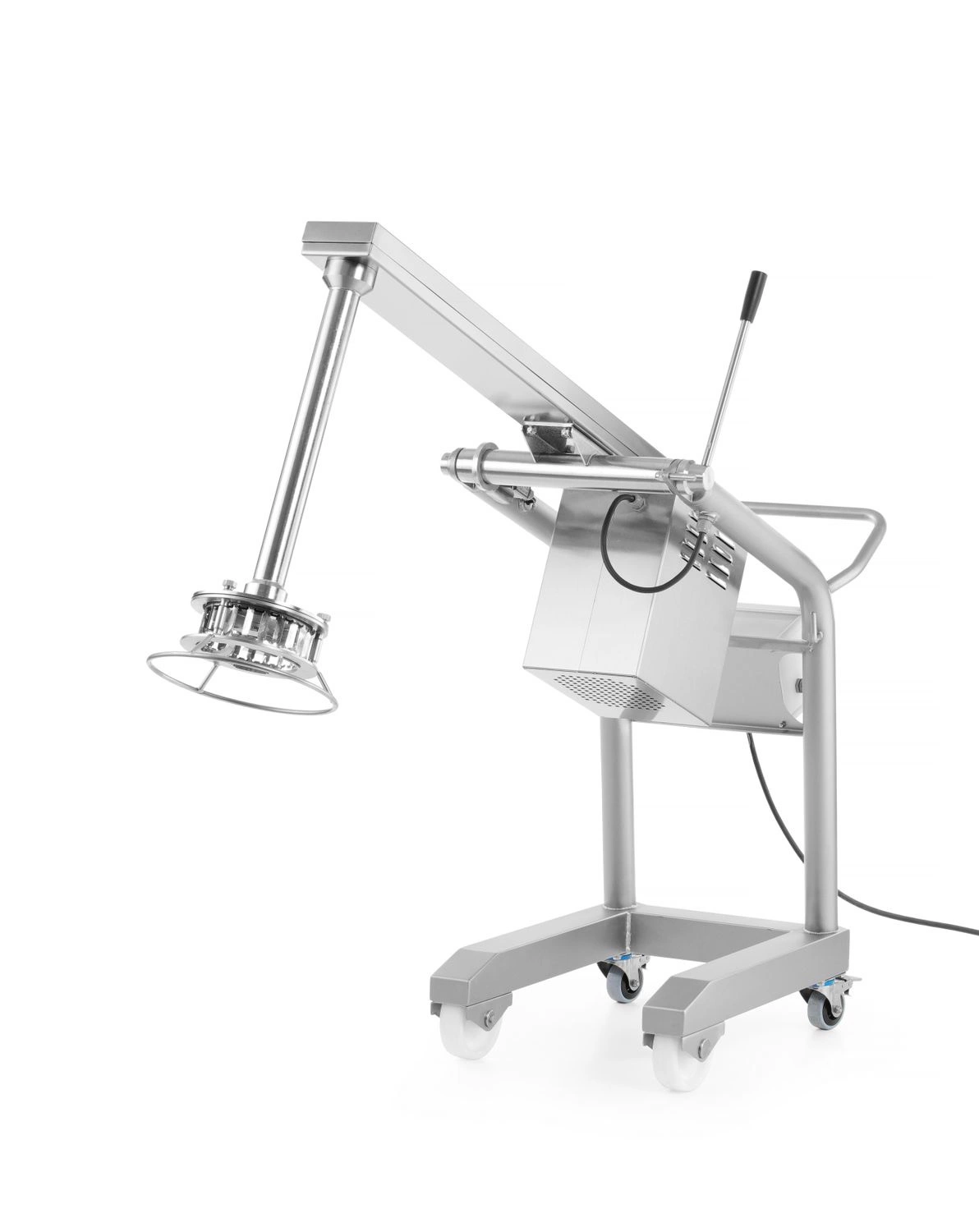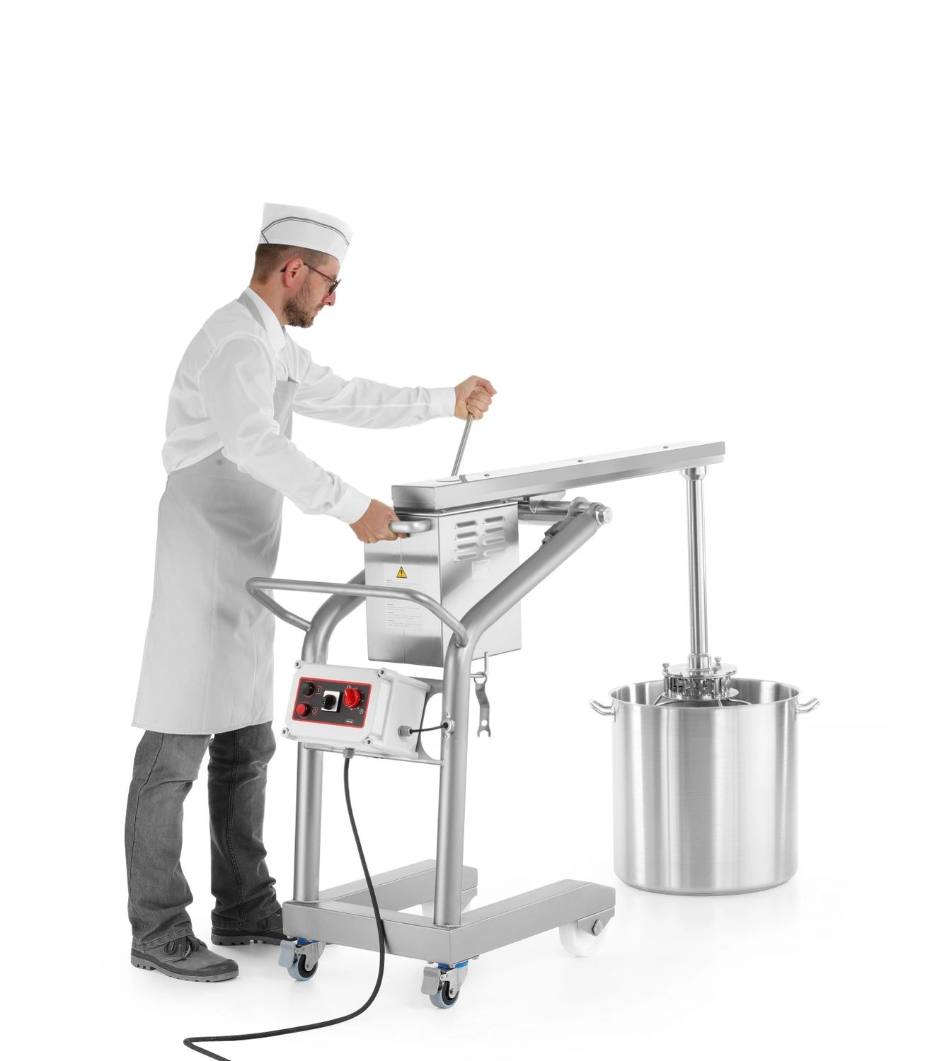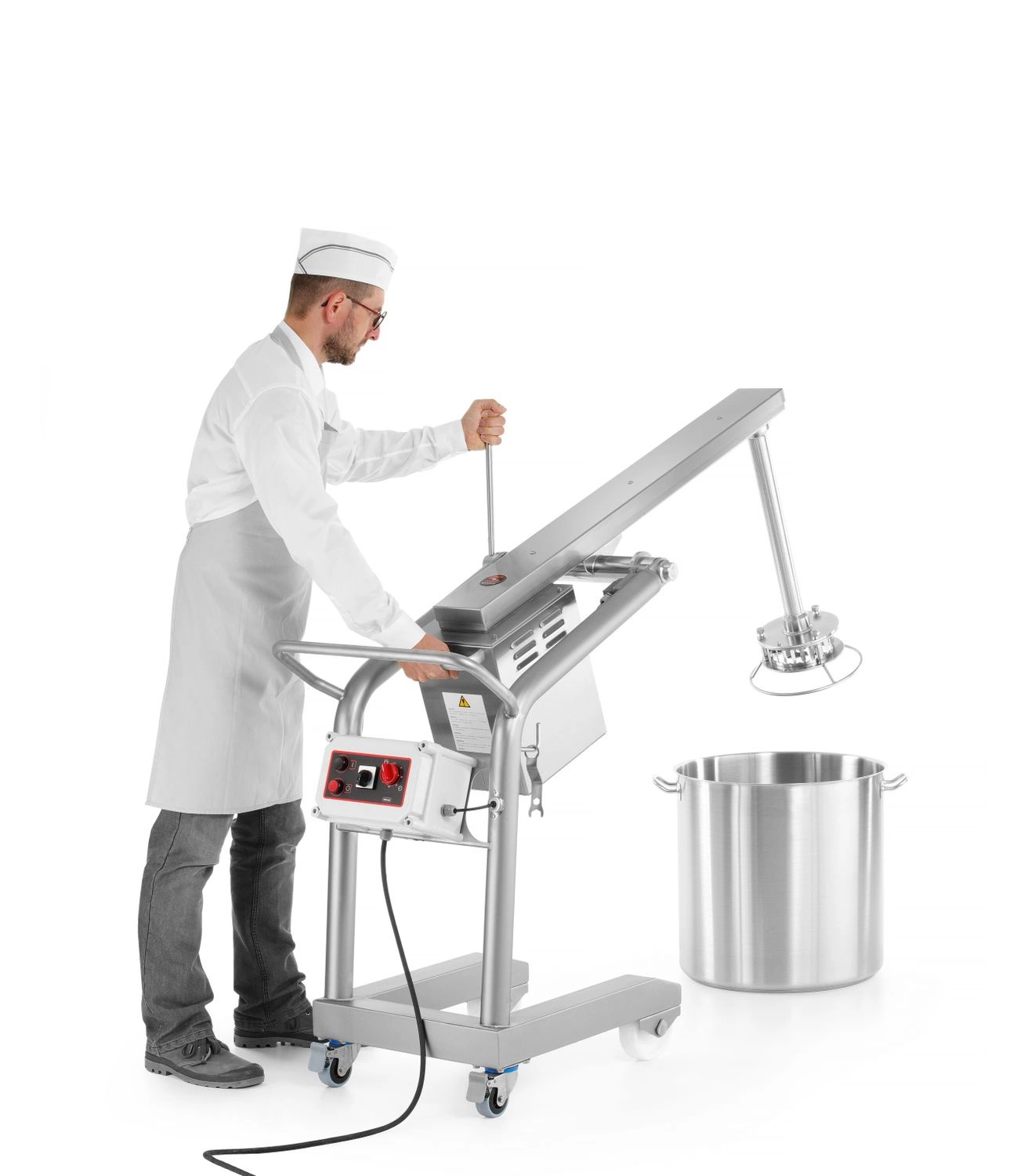 Ideálny na mixovanie potravín priamo vo vriacich panviciach. 60 cm dlhé rameno účinne mieša v akomkoľvek type nádoby, okrúhlej alebo obdĺžnikovej. Je vyrobené výhradne z nehrdzavejúcej ocele 18/10. Rameno sa môže pohybovať v rôznych smeroch a je výškovo nastaviteľné. Upevnené na wózku so 4 protišmykovými gumovými nožičkami, z ktorých 2 majú brzdy.