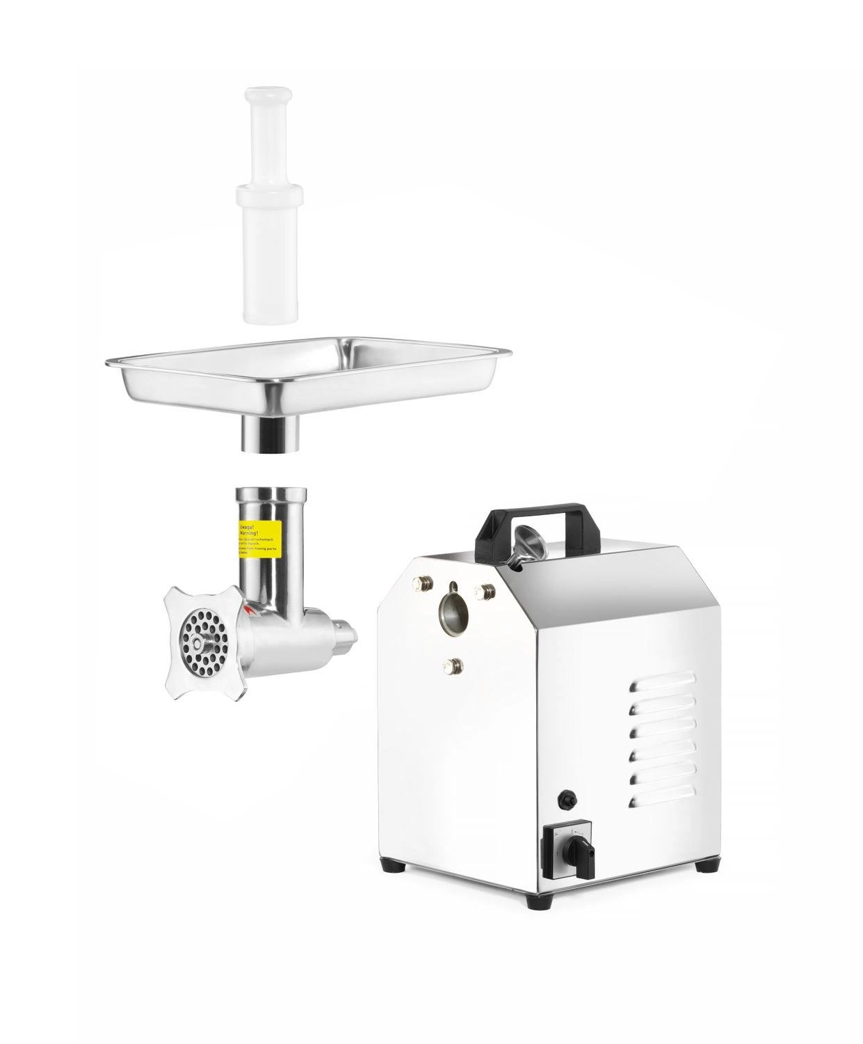 Profesionálny mlynček na mäso od spoločnosti Top Line Určený na mletie všetkých druhov mäsa bez kostí a kože. Puzdro je celé vyrobené z vysokokvalitnej leštenej nehrdzavejúcej ocele. Odnímateľné hrdlo z chirurgickej ocele 304 18/10. Jednoduché vybratie hrdla a všetkých vnútorných častí na jednoduché čistenie. Motor s ochranou proti prehriatiu. Spätný chod v prípade upchatého hrdla. Tlačidlo Reset na ochranu prístroja pred preťažením. Pohodlná rukoväť na tele na prenášanie. Protišmykové nožičky.