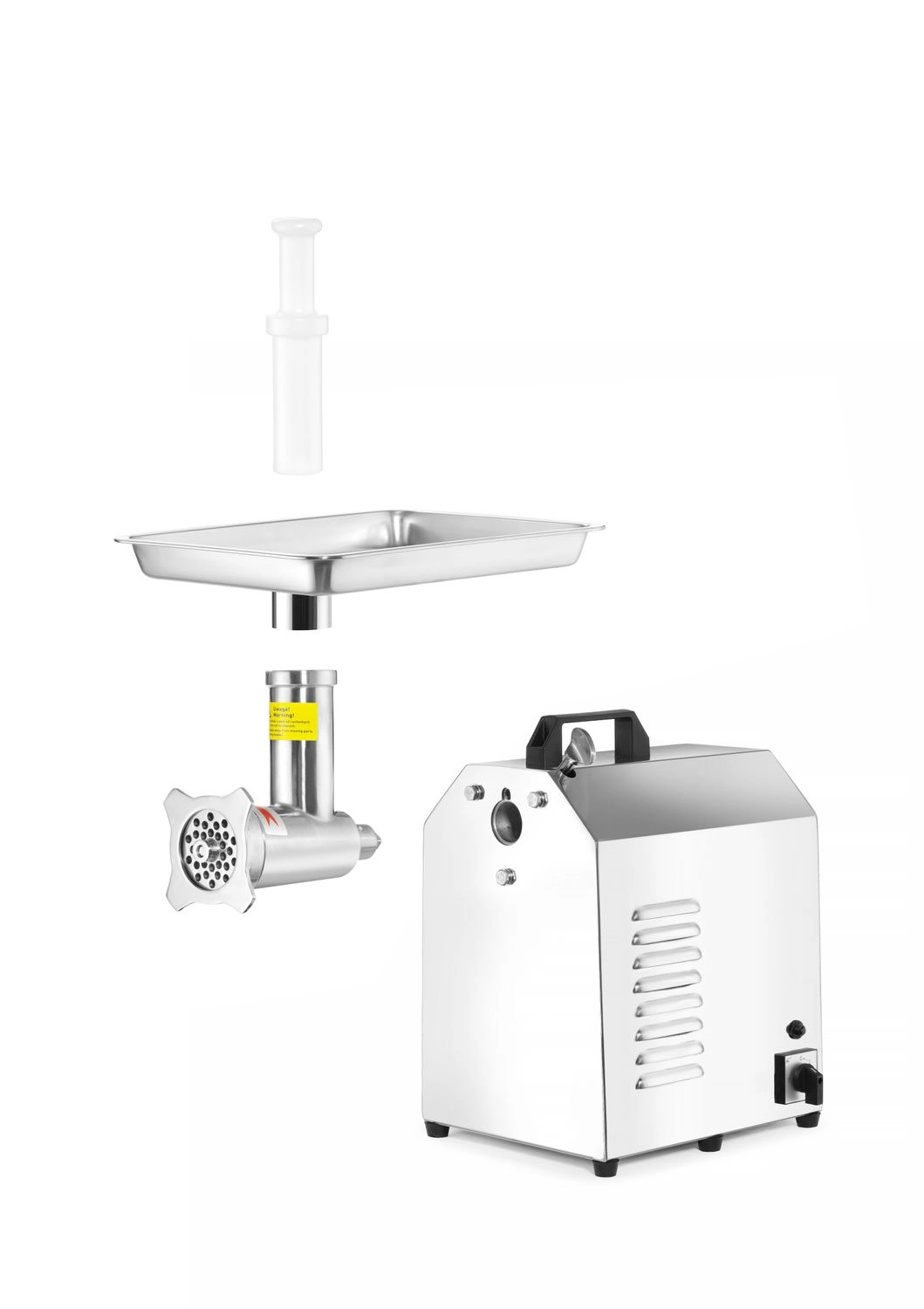 Profesionálny mlynček na mäso od spoločnosti Top Line Určený na mletie všetkých druhov mäsa bez kostí a kože. Puzdro je celé vyrobené z vysokokvalitnej leštenej nehrdzavejúcej ocele. Odnímateľné hrdlo z chirurgickej ocele 304 18/10. Jednoduché vybratie hrdla a všetkých vnútorných častí na jednoduché čistenie. Motor s ochranou proti prehriatiu. Spätný chod v prípade upchatého hrdla. Tlačidlo Reset na ochranu prístroja pred preťažením. Pohodlná rukoväť na tele na prenášanie. Protišmykové nožičky.