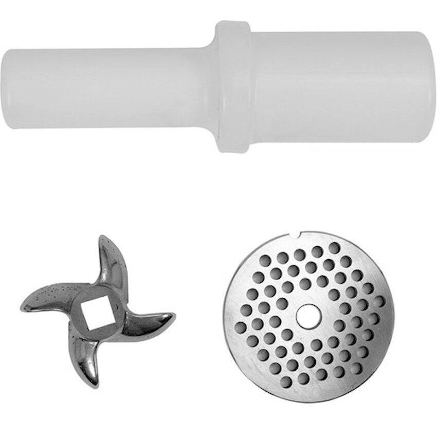 Mlynček na mäso (vlk) značky YATO určený na profesionálne použitie v gastronomických prevádzkach, mäsových a lahôdkových obchodoch, reštauráciách, cateringových firmách. Výborne sa hodí na prípravu mäsových výrobkov, údenín a klobás. Telo zariadenia je vyrobené z hliníka, časti prichádzajúce do kontaktu s potravinami sú vyrobené z nehrdzavejúcej ocele. Protišmykové nožičky. Vo vnútri je nainštalovaný motor s výkonom 0,75 kW, ktorý umožňuje pomlieť 250 kg mäsa za hodinu. Rýchlosť otáčania je 193/225 ot./min. V balení je 4-ramenný nôž, sitká s otvormi s priemerom 6 a 8 mm a plastový tlačič z polyetylénu.