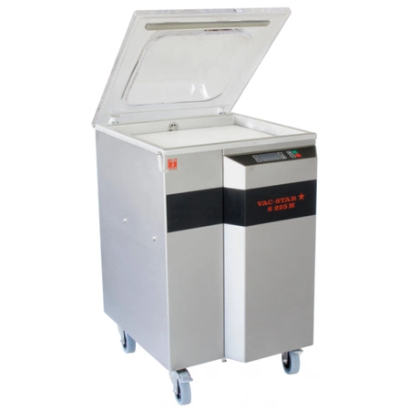 Mobilný 1-komorový vákuový baliaci stroj S-225 M SX V/B20 by VAC-STAR je stroj profesionálnej kvality určený pre stredné a menšie gastronomické podniky, ktoré hľadajú výkonnú a presnú technológiu vákuového balenia za výhodnú cenu. Tento model je optimalizovaný na každodenné použitie, poskytuje vynikajúce výsledky balenia pri kompaktných rozmeroch a jednoduchej obsluhe.