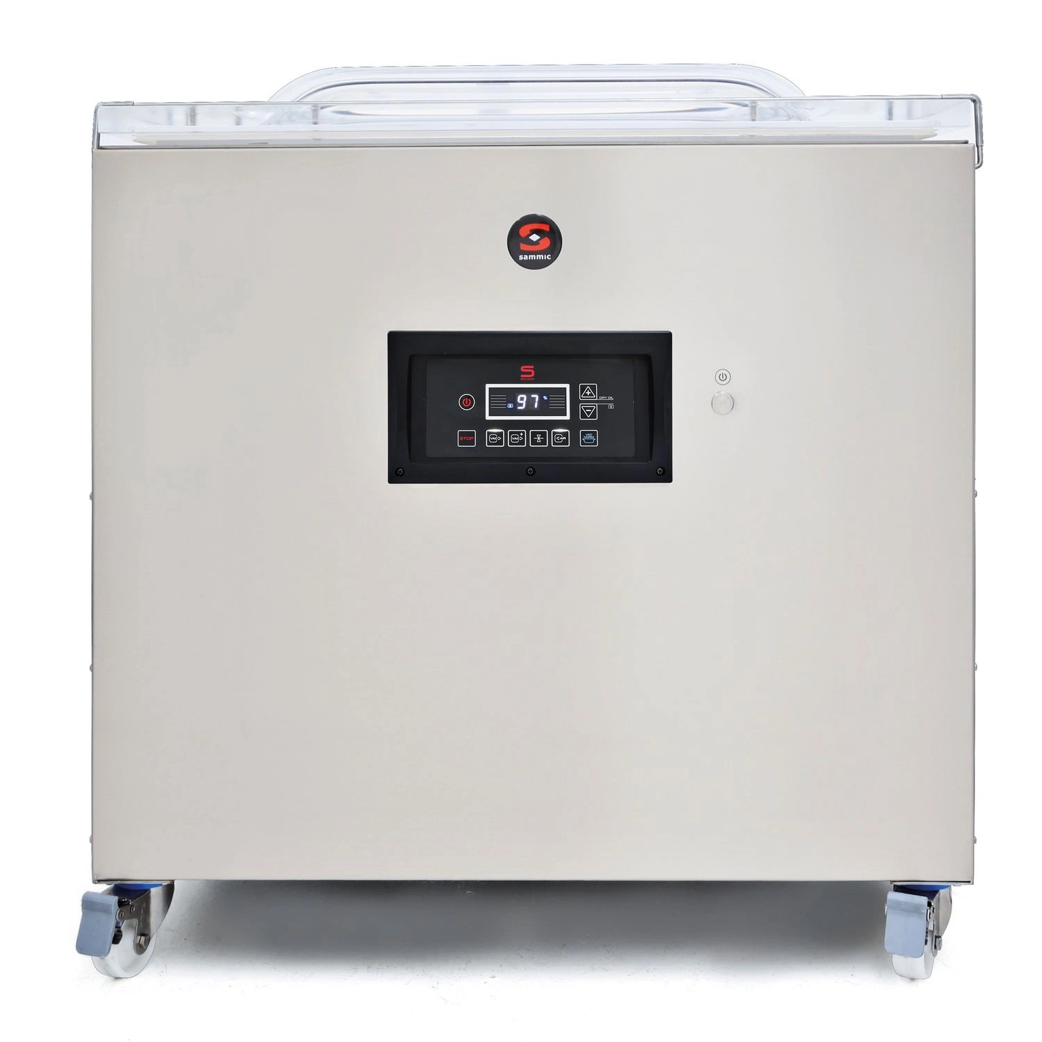 Všetky sú vyrobené z nehrdzavejúcej ocele. Kryt je vyrobený z priehľadného polykarbonátu. Je vybavený čerpadlom Busch s výkonom 63 m3/h. Akumulátorové tesniace tyče sa veľmi ľahko čistia. Vďaka senzoru je možné kontrolovať parametreóv stroji. Špeciálny program "odsávanie po etapách" je určený pre chúlostivé výrobky. Bezpečnostný systém chráni pred chybami alebo predĺžením času pečatenia. Počítadlo prevádzkových hodín ukazuje, kedy je potrebná výmena oleja.