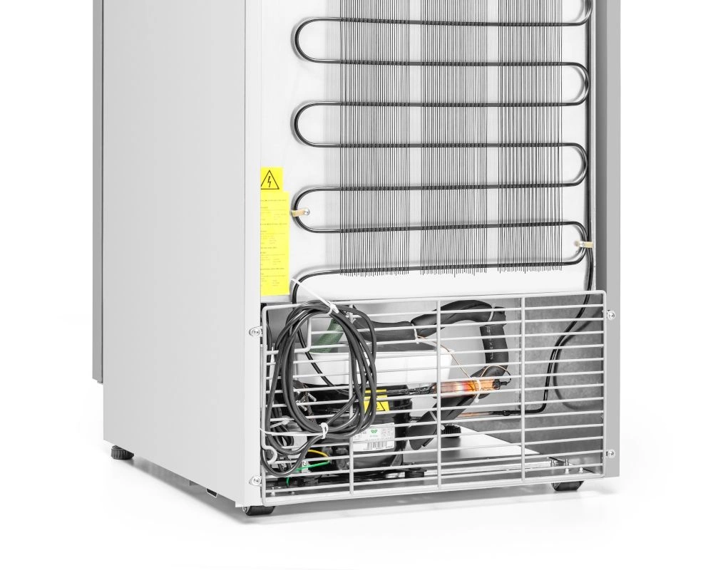 V sade sa nachádza kompletných šesť pevných roštových políc, každá s rozmermi 60 x 48 cm, čo umožňuje pohodlné a bezpečné usporiadanie produktov. Magnetické tesnenie dverí zabezpečuje účinné uzatvorenie a jednoduchú výmenu v prípade opotrebenia, čo ovplyvňuje dlhodobú tesnosť a úsporu energie. Dvere sú vybavené zámkom, ktorý umožňuje zabezpečenie skladovaných tovarov pred prístupom neoprávnených osôb. Elektronický ovládač Dixell s prehľadným displejom umožňuje presné nastavenie a monitorovanie teploty, čo je nevyhnutné pri skladovaní produktov vyžadujúcich špeciálne chladiace podmienky. Prevádzka zariadenia je možná pri okolitej teplote do +30°C, čo umožňuje používanie aj v náročných podmienkach priemyselných kuchýň či skladov.