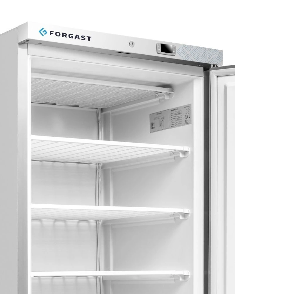 Mraziaca skriňa Forgast bola navrhnutá s dôrazom na intenzívne využívanie v profesionálnych kuchyniach a obchodných prevádzkach. Pevný plášť z nehrdzavejúcej ocele zaručuje odolnosť voči korózii a mechanickému poškodeniu, zatiaľ čo vnútro z plastu poskytuje jednoduché čistenie a hygienické podmienky na skladovanie potravín. Zariadenie je vybavené šiestimi pevnými roštovými policami, ktoré umožňujú efektívne rozmiestnenie produktov, ako aj zámkom chrániacim obsah pred neoprávneným prístupom. Vďaka statickému chladiacemu systému a výkonnému agregátu Embraco skriňa zabezpečuje rovnomerné rozloženie chladu a dlhodobé udržiavanie nízkej teploty, čo je kľúčové pri skladovaní mäsa, rýb, mrazených zelenín či zmrzliny.