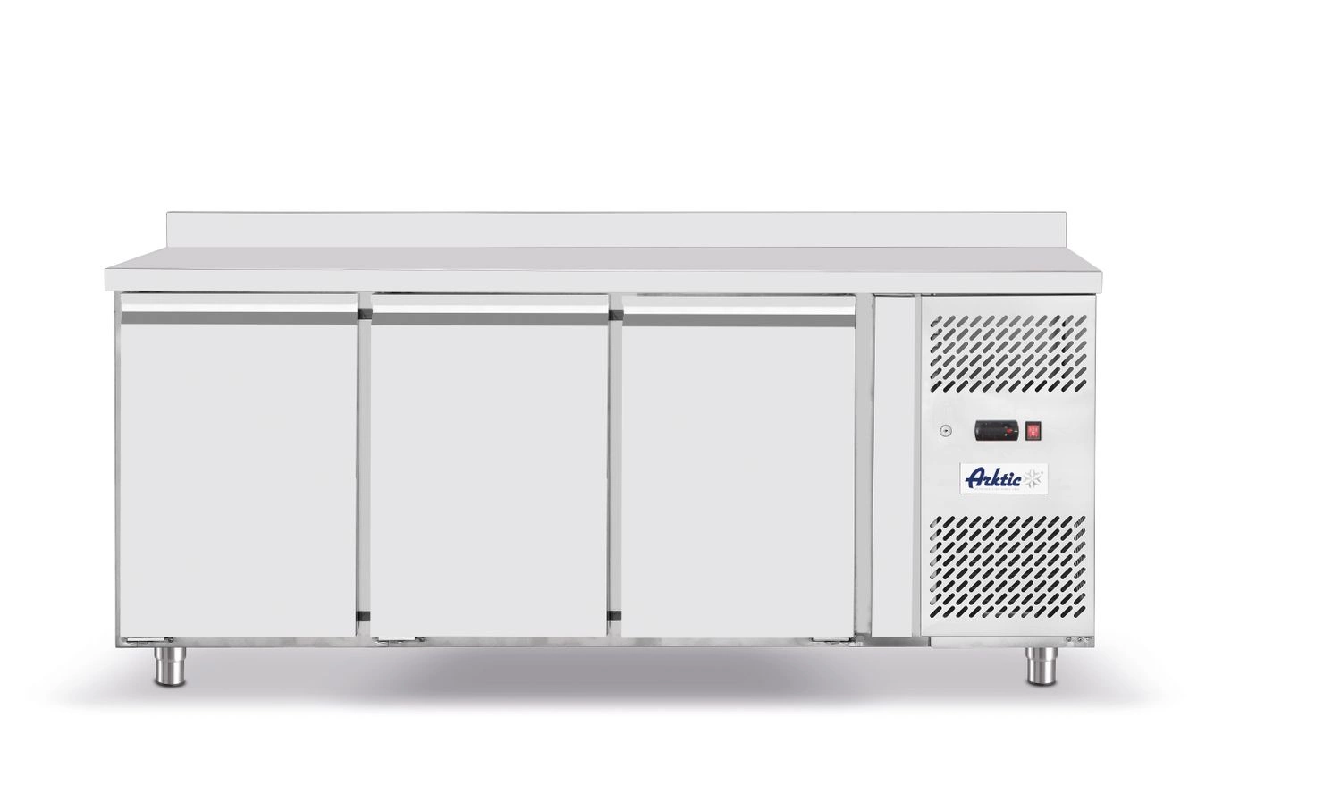 Korpus stola je vyrobený z odolnej nehrdzavejúcej ocele, čo zabezpečuje odolnosť voči korózii a jednoduché čistenie. Bočné umiestnenie chladiaceho agregátu (EMBRACO) umožňuje efektívnu výmenu vzduchu a jednoduchú údržbu. Každé z troch dverí je vybavené policou s vysokou nosnosťou, čo umožňuje skladovanie ťažších produktov. Automatické odparovanie kondenzátu a protiprašný filter znižujú frekvenciu servisných zásahov a digitálny displej a elektronický termostat umožňujú presné riadenie teploty.