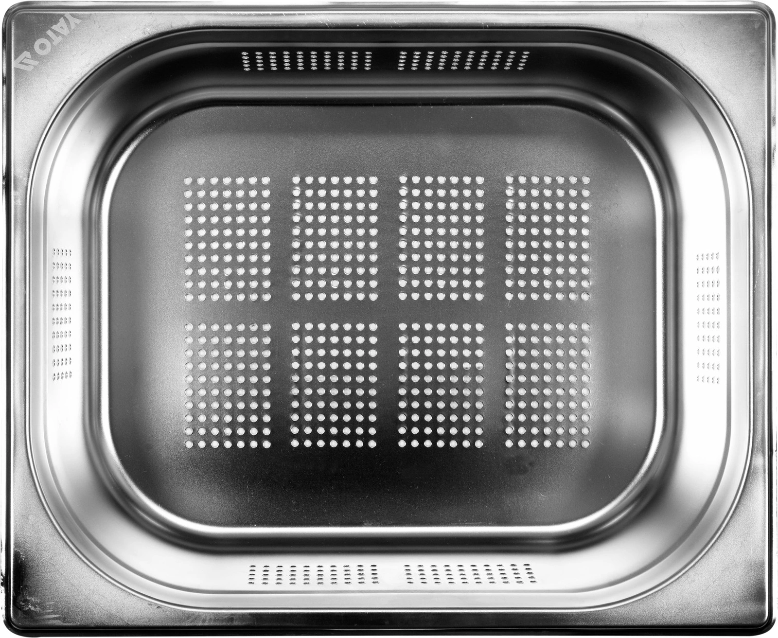 GN nádoba 1/2 s hĺbkou 10 cm vyrobená z perforovanej nehrdzavejúcej ocele je praktickým prvkom vybavenia každej profesionálnej kuchyne. Perforovaná konštrukcia umožňuje efektívne odvádzanie tekutín a pevné spracovanie zaručuje odolnosť a pohodlie pri používaní. Produkt je ideálny pre gastronómiu – na skladovanie, prípravu a servírovanie jedál, ktoré vyžadujú odkvapkávanie, ako je napríklad dusená zelenina alebo mäso po tepelnom spracovaní.
