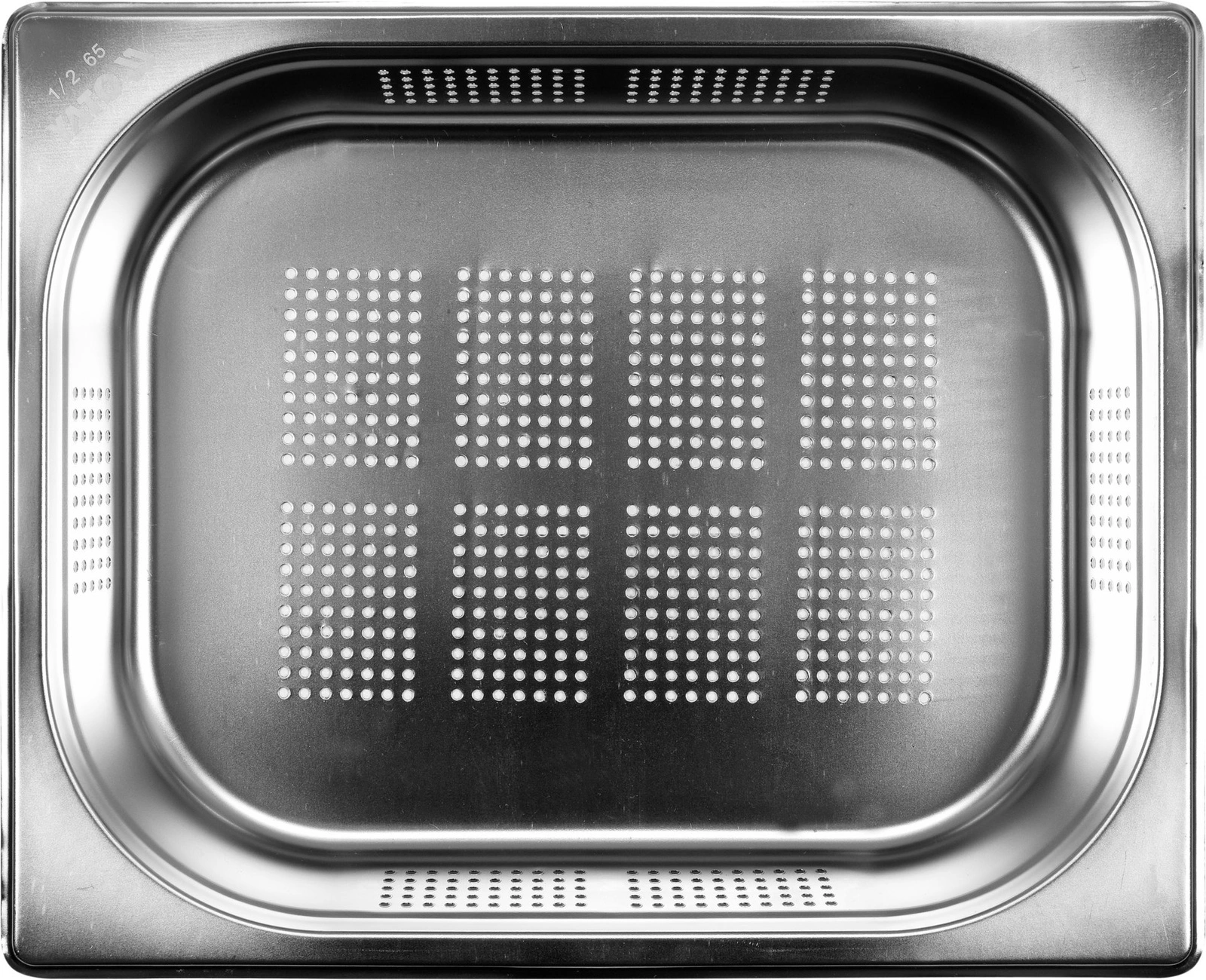 Perforovaná GN nádoba 1/2 s matným povrchom sa osvedčí v profesionálnych kuchyniach, kde záleží na rýchlosti práce a vysokej kvalite skladovania produktov. Vďaka perforácii je nádoba ideálna na odkvapkávanie zeleniny po blanšírovaní, servírovanie jedál, ktoré vyžadujú odtečenie, ako napríklad hranolky alebo varené cestoviny. Nehrdzavejúca oceľ zaručuje bezpečnosť pri kontakte s potravinami a jednoduché čistenie po intenzívnom používaní. Rohy nádoby sú zaoblené, čo uľahčuje vyberanie produktov aj samotné umývanie nádoby.