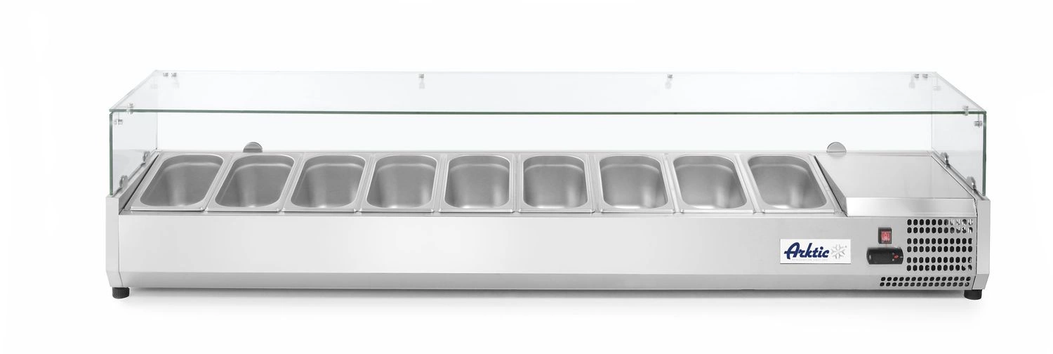 Chladiaca nadstavba ARKTIC 232996 je ideálna pre reštaurácie, šalátové bary, hotely a prevádzky ponúkajúce jedlá so sebou. Perfektná na skladovanie zeleniny, príloh, prísad na pizzu alebo dezertov pri optimálnej teplote. Vďaka možnosti použitia hlbokých GN 1/3 nádob používatelia získavajú flexibilitu v organizácii výdajnej zóny a rýchly prístup k čerstvým produktom.