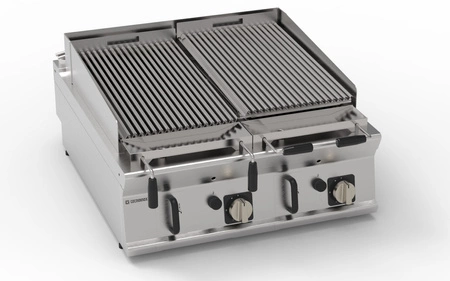 Lávový gril TECNOINOX 313205 je profesionálny plynový spotrebič s dvoma nezávislými grilovacími zónami s plochou 62 × 36 cm. Kombinovaný výkon 20 kW zaisťuje rýchly ohrev a vysoký pracovný výkon, ideálny na intenzívne používanie v gastronómii. Spotrebič je určený na presné a rovnomerné grilovanie rôznych druhov mäsa, rýb a zeleniny.
