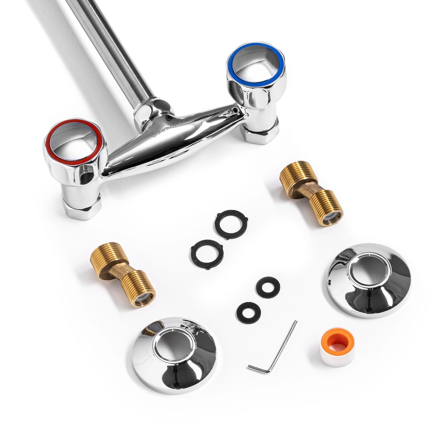 Celok je vyrobený z vysoko kvalitných materiálov, čo zaručuje odolnosť voči mechanickému poškodeniu a korózii. Súčasťou balenia je nástenná batéria s otočnými ventilmi, sprcha na pružine a stabilizačný držiak zabezpečujúci bezpečnú montáž na stenu. Vďaka tomu používateľ dostáva kompletný produkt pripravený na montáž, ktorý sa osvedčí ako v nových inštaláciách, tak pri modernizácii existujúcich kuchynských stanovíšť.