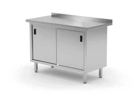Stół przyścienny z szafką marki Hendi je nepostrádateľným vybavením pre reštaurácie, jedálne, bary a iné stravovacie zariadenia, kde je dôležitá odolnosť, funkčnosť a jednoduché používanie. Ideálne riešenie na optimalizáciu kuchynského priestoru.