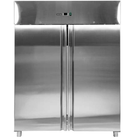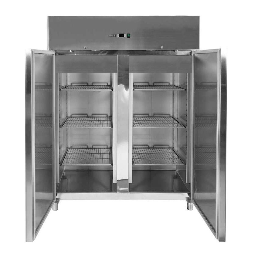 Nerezová chladiaca skriňa 2-dverová značky YATO. Objem 1200 l. Vnútorný aj vonkajší plášť je vyrobený z nehrdzavejúcej ocele ss201. Samozatváracie dvere so zámkom a pohodlnou rukoväťou na otváranie. Vybavenie zahŕňa 6 roštových políc (po 3 na dvere) s PVC povrchom a maximálnou nosnosťou 40 kg – pri rovnomernom zaťažení. Možnosť uloženia GN nádob 2/1. Komora je vybavená LED osvetlením. Horná chladiaca jednotka Danfoss s výkonom 400 W využíva chladiaci plyn R290, určená je na prevádzku v 4. klimatickej triede – pri maximálnej okolitej teplote 30o C a relatívnej vlhkosti 55 %. Zariadenie má elektronický ovládač s digitálnym displejom teploty. Zariadenie je umiestnené na 4 nastaviteľných nožičkách 12-18 cm. Skriňa je ľahko udržiavateľná v čistote. Priemerná ročná spotreba energie je 1716 kWh.