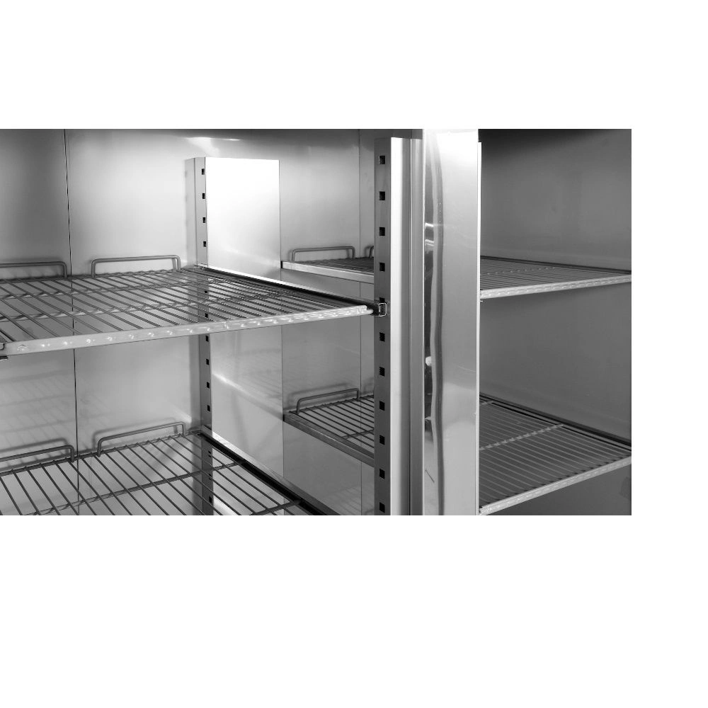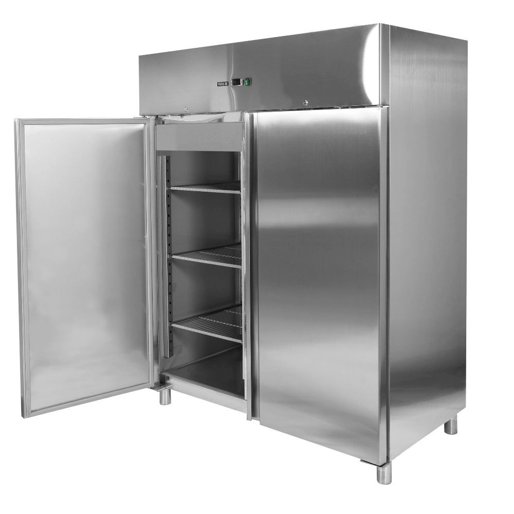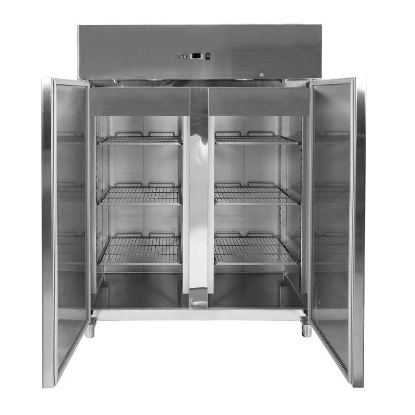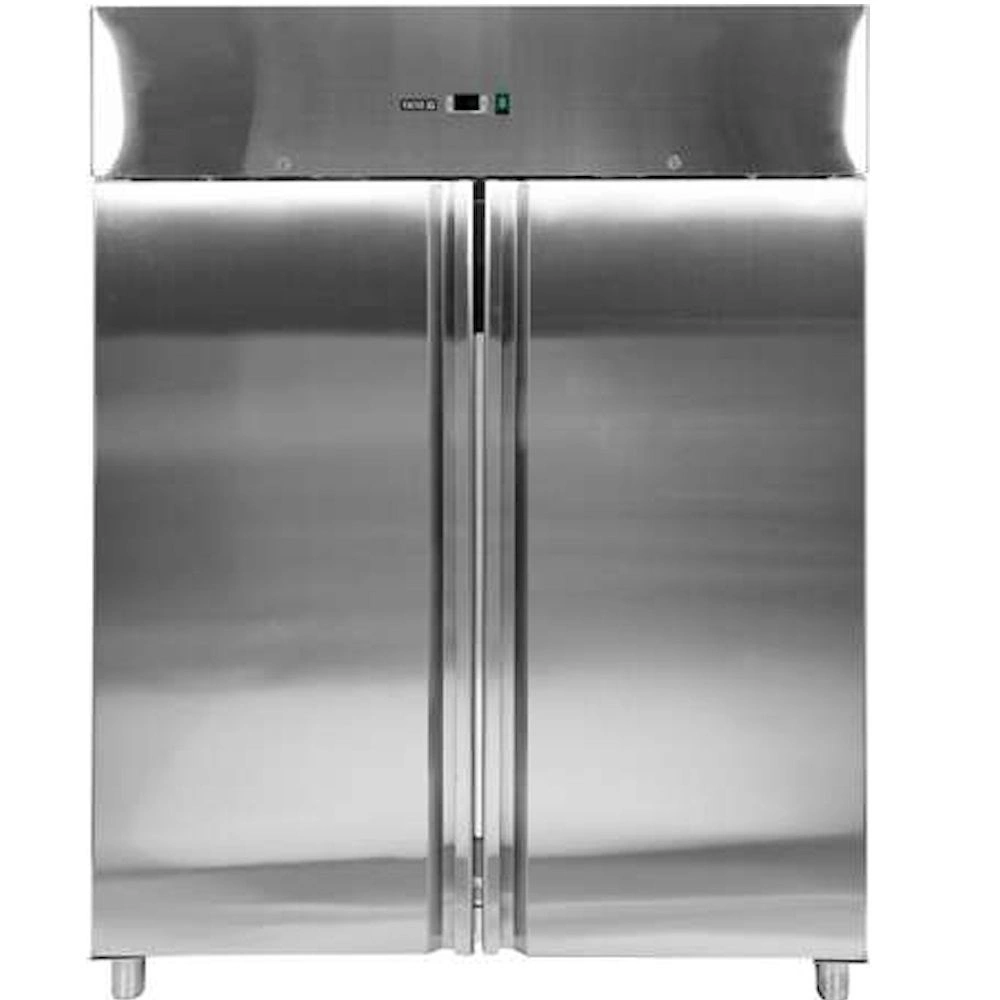 Nerezová mraziaca skriňa 2-dverová s objemom 1200 l. Vnútorný aj vonkajší plášť je vyrobený z nerezovej ocele ss201. Samozatváracie dvere so zámkom, vybavené pohodlnou rukoväťou na otváranie. Skriňa je vybavená 6 roštovými policami potiahnutými PVC s nosnosťou 40 kg - pri rovnomernom rozložení (po 3 na každé dvere). Chladiaca komora má LED osvetlenie. Možnosť skladovania GN 2/1 nádob. Zariadenie je umiestnené na 4 nožičkách s nastaviteľnou výškou 12-18 cm. Horná chladiaca jednotka s výkonom 700 W využíva chladiaci prostriedok R290, je určená na prevádzku v 4. klimatickej triede – pri maximálnej okolitej teplote 30o C a relatívnej vlhkosti 55 %. Zariadenie má elektronický ovládač s digitálnym displejom teploty. Priemerná ročná spotreba energie je 4238 kWh.