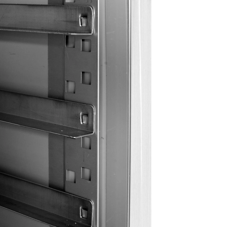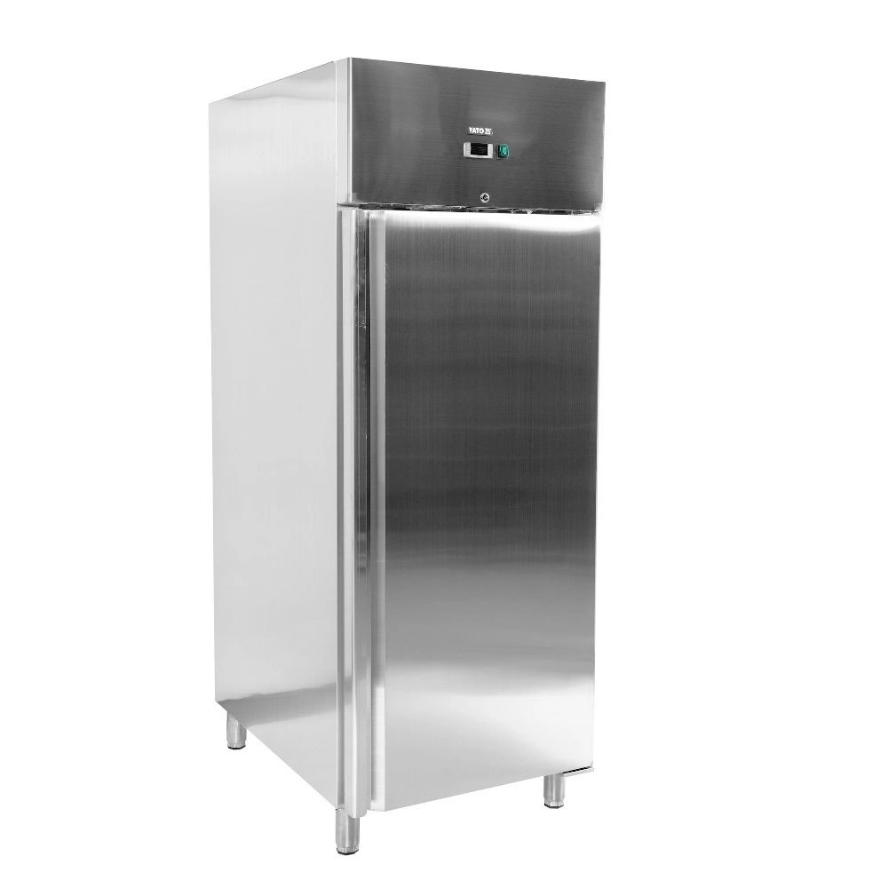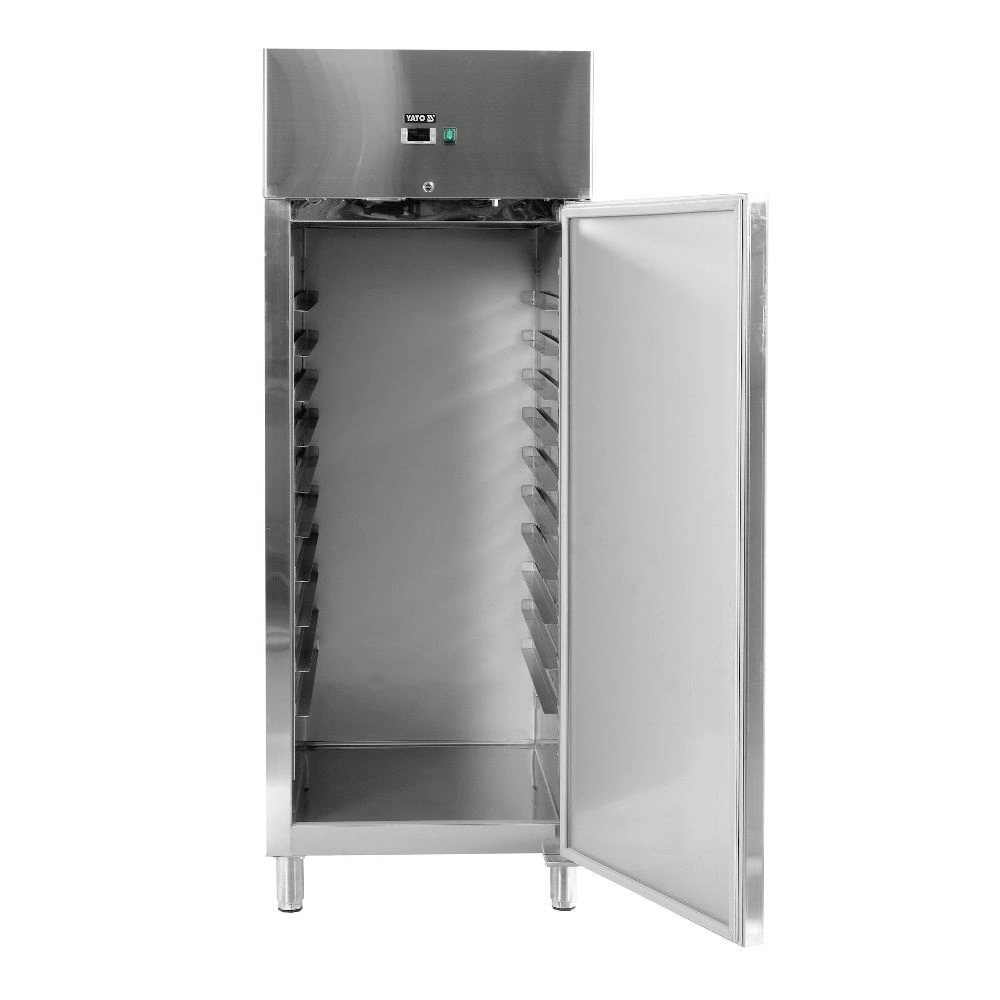 Pekárenská chladiaca skriňa značky YATO. Kapacita 737l. Vnútorný aj vonkajší plášť je vyrobený z nehrdzavejúcej ocele ss201. Skriňa má 10 úrovní s vodičmi s rozmermi 60x80 cm, prispôsobenými na pekárenské plechy s nosnosťou 40 kg každý, s možnosťou 34-stupňového nastavenia vodičov. Komora je vybavená LED osvetlením. Samozatváracie dvere so zámkom, vymeniteľné magnetické tesnenia.