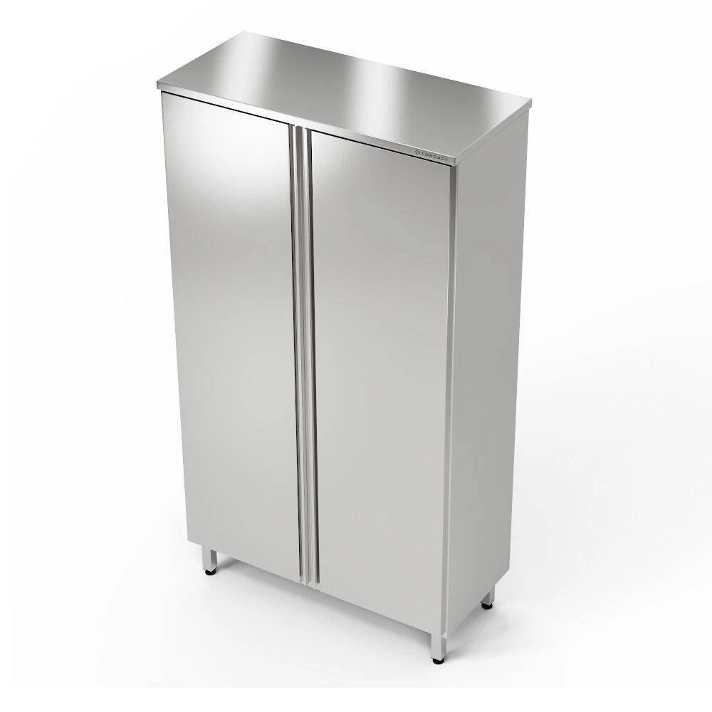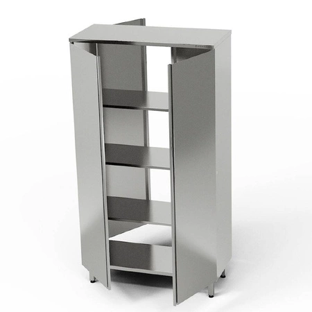 Priechodná skrinka s rozmermi 120x50x180 cm z nerezovej ocele J4. Skriňa je vybavená 3 pólavičkami. Výklopné dvere.