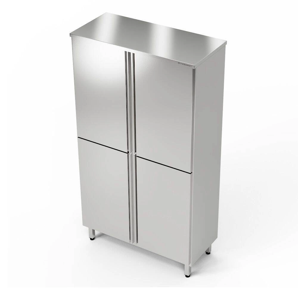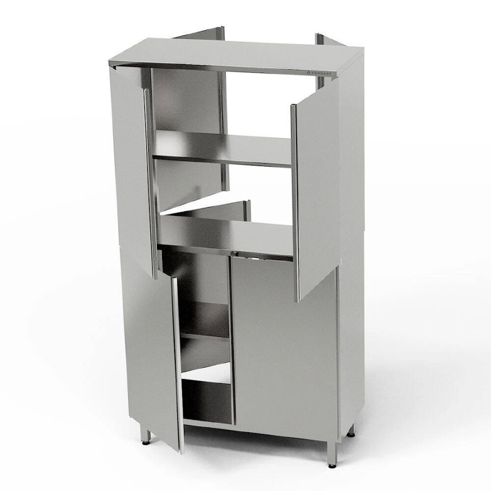 Priechodná delená skriňa s rozmermi 80x70x180 cm z nehrdzavejúcej ocele J4. V každej časti skrine je 1 półka.