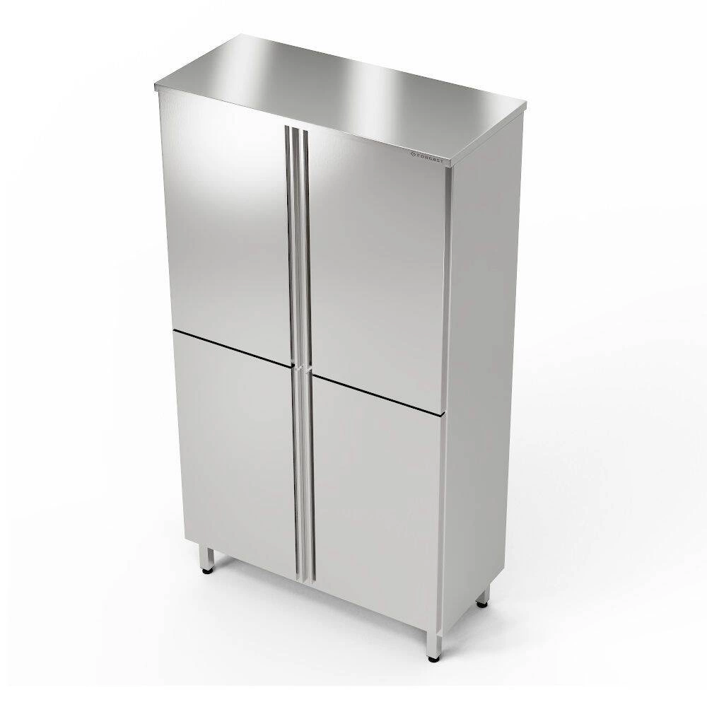 Priechodná delená skriňa s rozmermi 90x50x180 cm z nehrdzavejúcej ocele J4. V každej časti skrine sú 2 lavice.