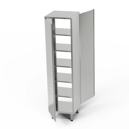 Úložná skriňa s rozmermi 60x60x180 cm je ideálnym kuchynským zázemím, ideálnym pre všetky stravovacie zariadenia, ako sú jedálne, bary, reštaurácie, jedálne alebo rýchle občerstvenie. Vyrobený z vysoko kvalitnej nehrdzavejúcej ocele, zaručuje trvanlivosť, odolnosť voči korózii a ochranu pred mechanickým poškodením. Vrchná časť skrinky je vyrobená z plechu s hrúbkou 0,8 alebo 1,0 mm, ktorý poskytuje pevnú a stabilnú pracovnú plochu. Výklopné dvierka umožňujú pohodlný prístup do vnútra skrinky. Nohy skrinky sú vybavené plastovými nožičkami s rozsahom nastavenia, ktoré umožňujú vyrovnanie skrinky v kuchyni. To je veľmi dôležité na zachovanie stability a róv rovnováhy. Skrinka má 5 skriniek, ktoré poskytujú dostatok úložného priestoru na rôzne kuchynské potreby. Je dokonalým riešením na efektívnu organizáciu v gastronómii.