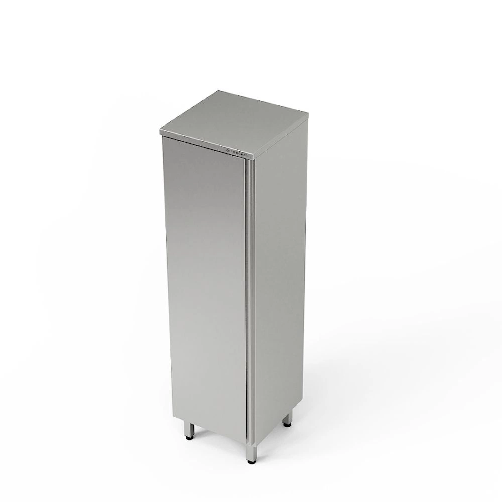 Jednostranná úložná skriňa FG03010/600/600/2000 s otváracími (výklopnými) dverami z nehrdzavejúcej ocele. Rozmery 60x60x200 cm. Skrinka je určená na skladovanie potravín alebo umytého riadu. Hrúbka plechu 0,8-1 mm. Skriňa má 5 pólavíc. Nohy nóžiek sú nastaviteľné v rozsahu od -1 do +2 cm.