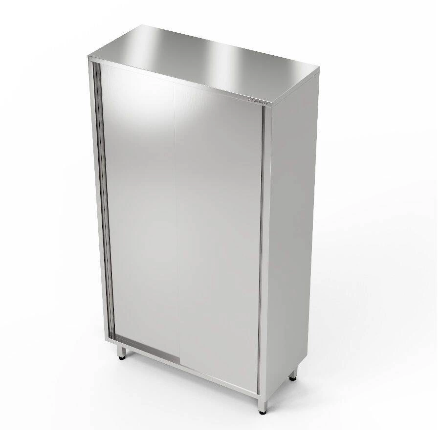 Úložná skriňa s rozmermi 90x60x180 cm z nehrdzavejúcej ocele J4. Skriňa má 3 pólavice. Posuvné dvere.