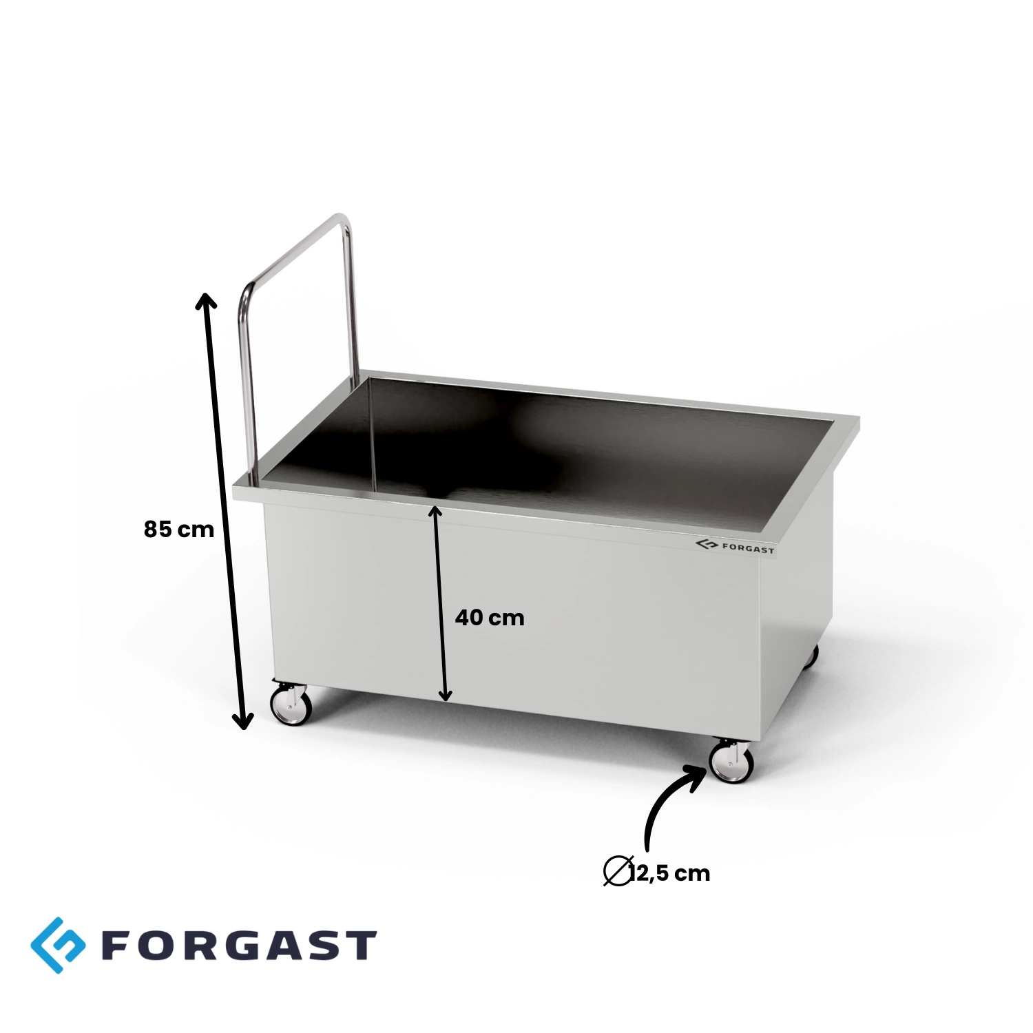 Nerezový jedno-komorový pojazdný nízky drez (hl. 40 cm) 110x70x85 cm FORGAST