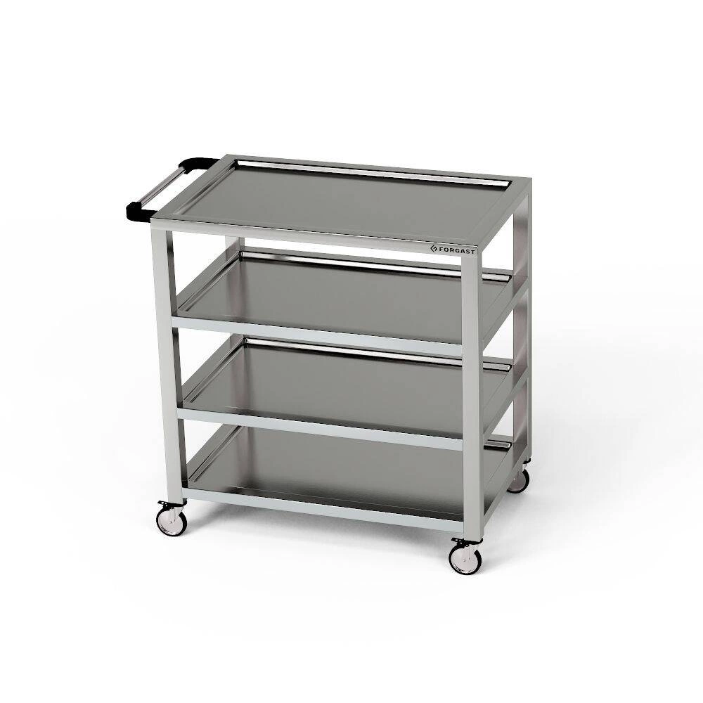 Čašnícky vozík 4-príruba s horizontálnou rukoväťou s rozmermi 110x40x85 cm z nehrdzavejúcej ocele J4.