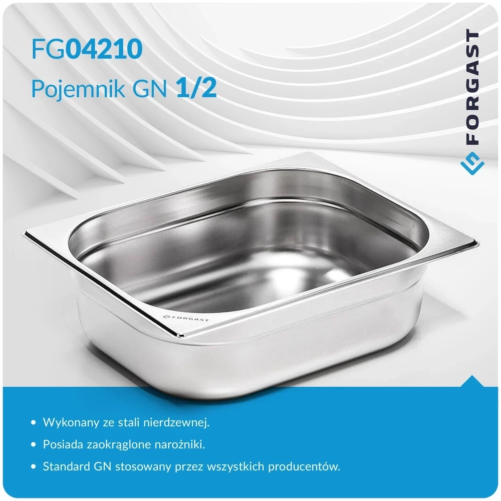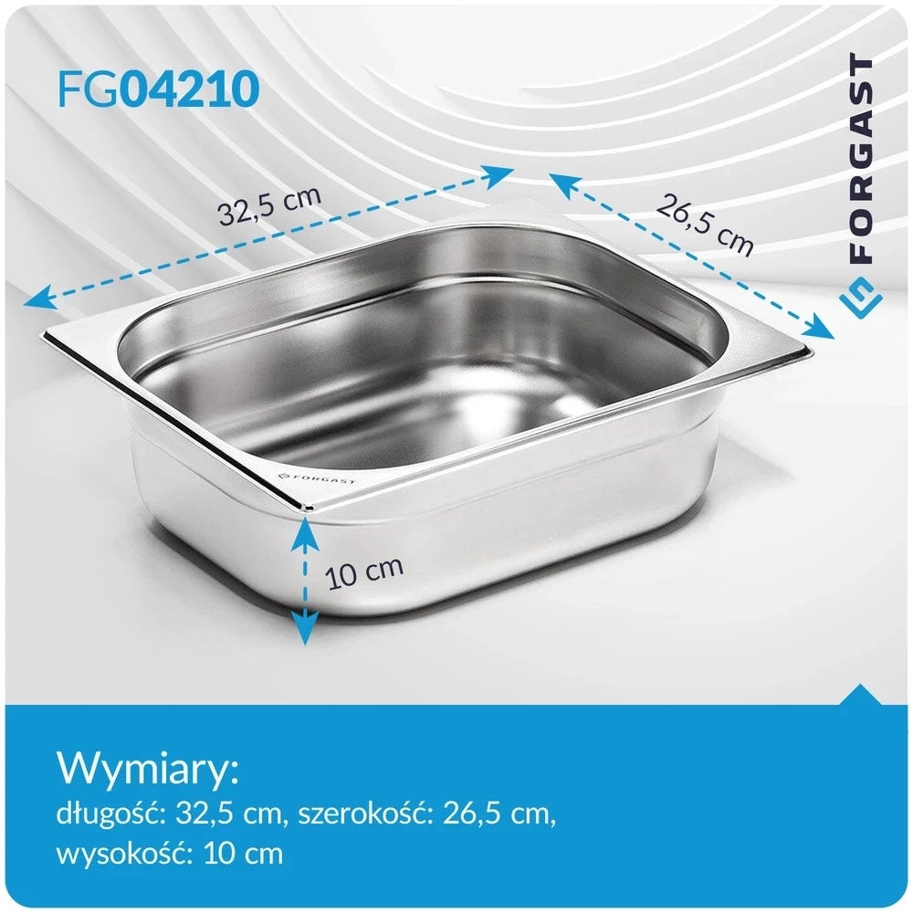 Nádoba GN 1/2 hĺbka 10 cm FORGAST FG04210 je spoľahlivé riešenie pre všetkých, ktorí si cenia trvácnosť, univerzálnosť a jednoduchosť používania. Nehrdzavejúca oceľ zaručuje odolnosť voči vysokým teplotám a chemikáliám, a pevná konštrukcia zabezpečuje dlhodobé používanie aj pri intenzívnej prevádzke. Výberom tejto nádoby investujete do bezpečnosti, hygieny a pohodlia práce v kuchyni.