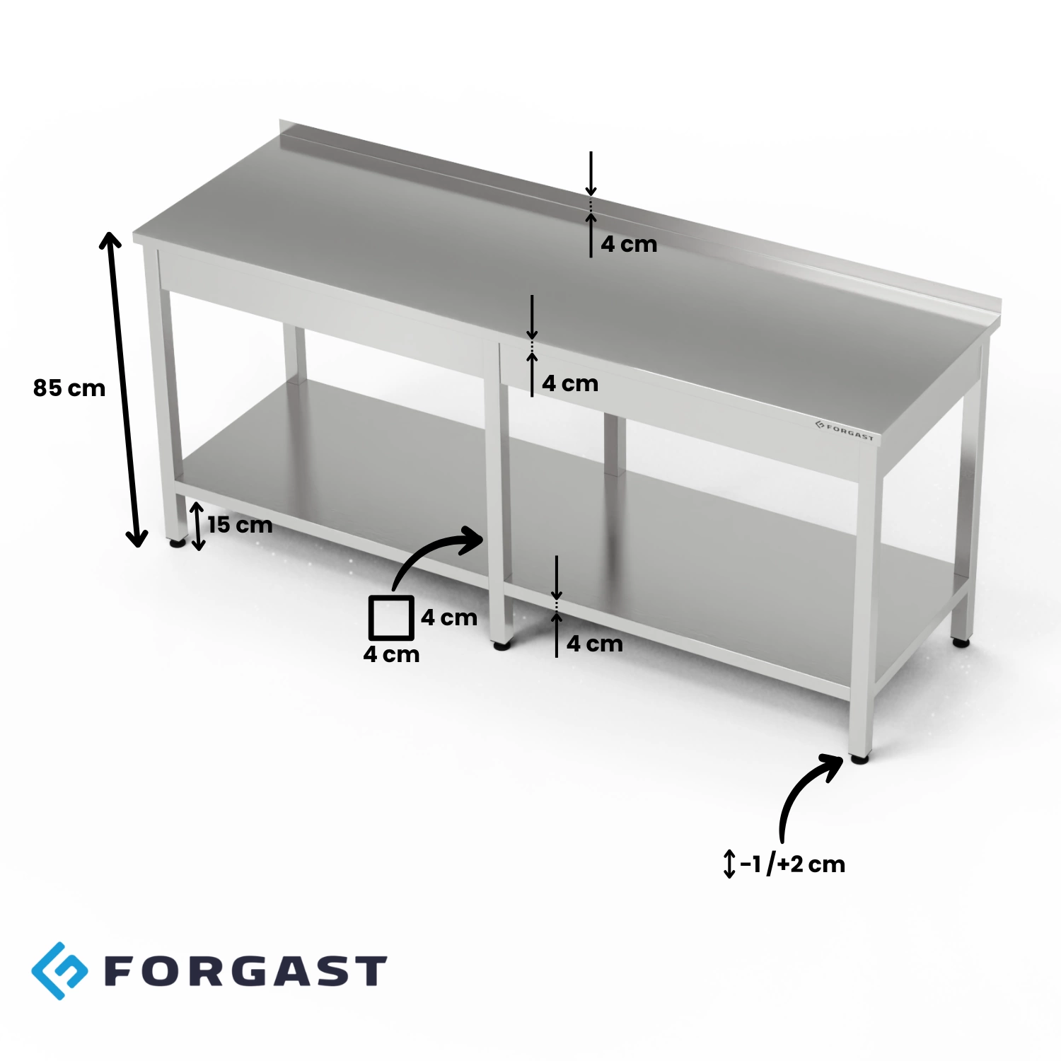 Nerezový pracovný stôl s policou 180x70x85 cm | FORGAST |