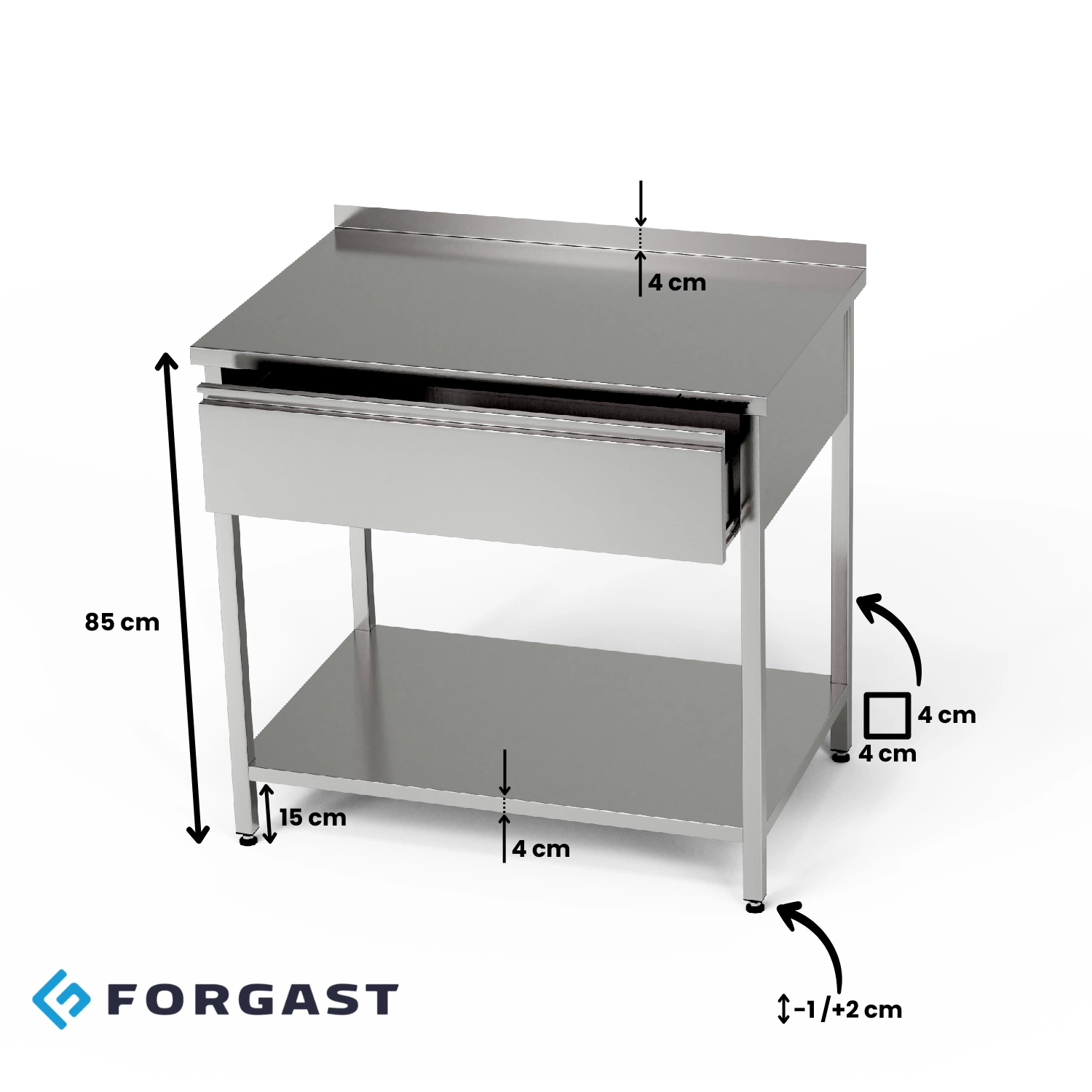 Pracovná stanica s rozmermi 50x70x85 cm so zásuvkou z nehrdzavejúcej ocele J4.