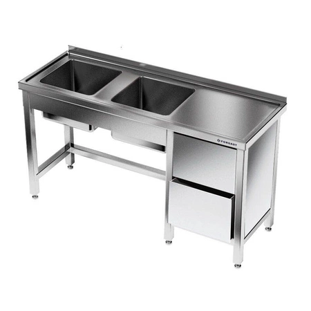 Nerezový stôl s dvojkomorovým drezom 160x60x85 cm FORGAST