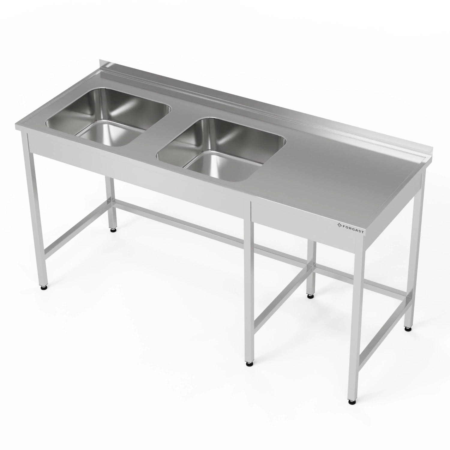 Nerezový stôl s 2-komorovým drezom 180x70x85 cm | FORGAST