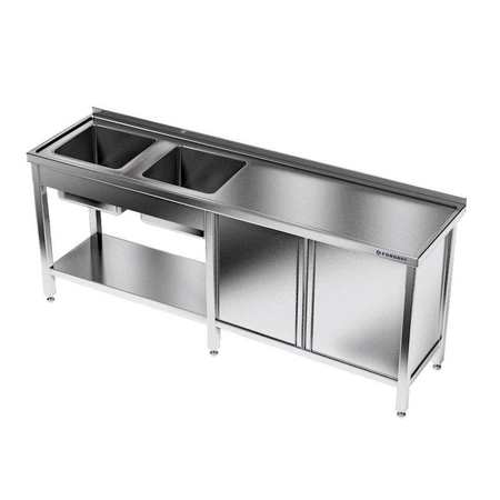 Nerezový stôl s dvojkomorovým drezom 190x60x85 cm FORGAST