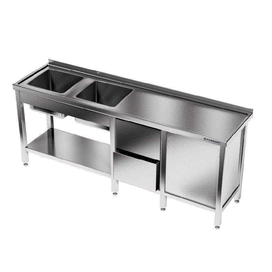 Nerezový stôl s dvojdrezom 200x60x85 cm FORGAST