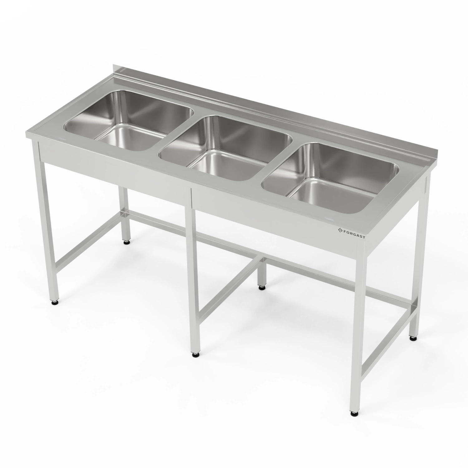 Nerezový stôl s 3-komorovým drezom 270x60x85 cm FORGAST je profesionálny gastronomický nábytok určený na intenzívne využívanie v reštauračných kuchyniach, jedálňach a iných zariadeniach spoločného stravovania. Vyznačuje sa pevnou konštrukciou z nehrdzavejúcej ocele, tromi priestrannými komorami drezu a možnosťou prispôsobenia rozloženia komôr podľa individuálnych potrieb. Ideálne sa hodí na miesta, kde je dôležitá hygiena, odolnosť a ergonómia práce.
