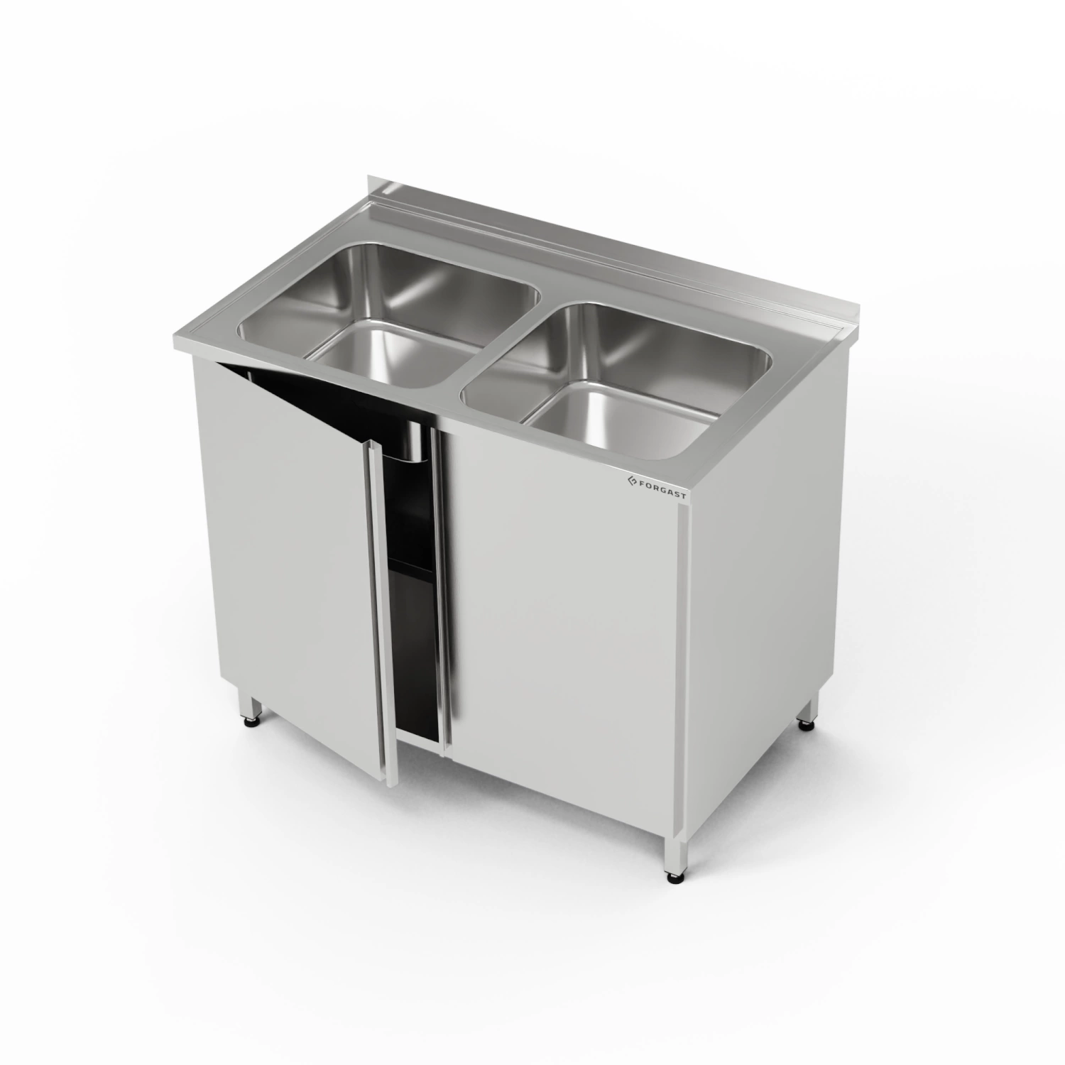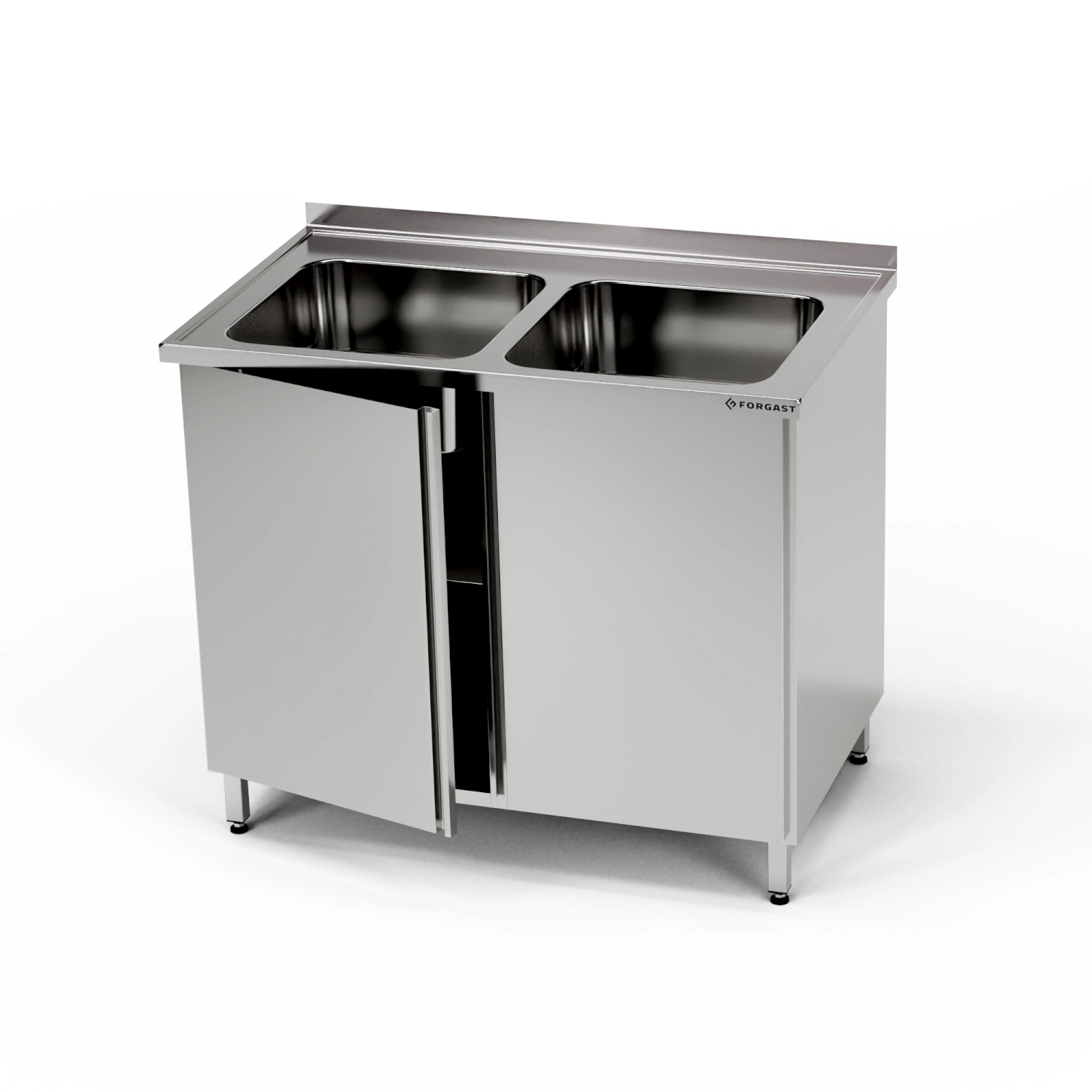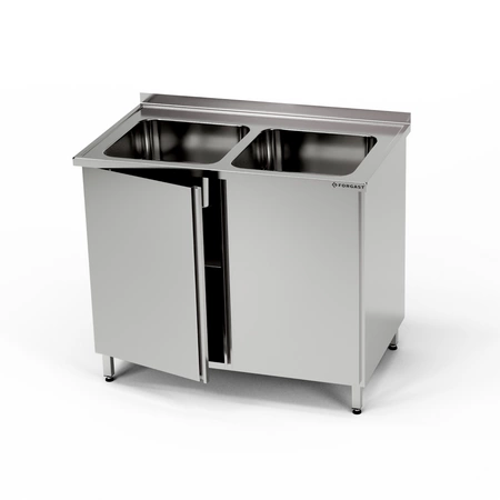 Nerezový stôl s dvojdrezom a skrinkou 100x70x85 cm | FORGAST