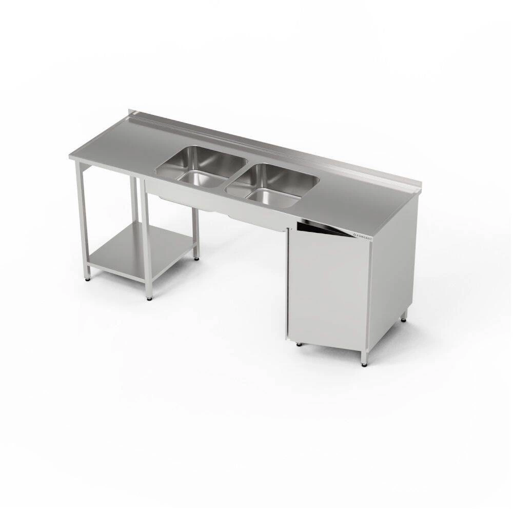 Nerezový stôl s 2-komorovým drezom a skrinkou 210x60x85 cm FORGAST