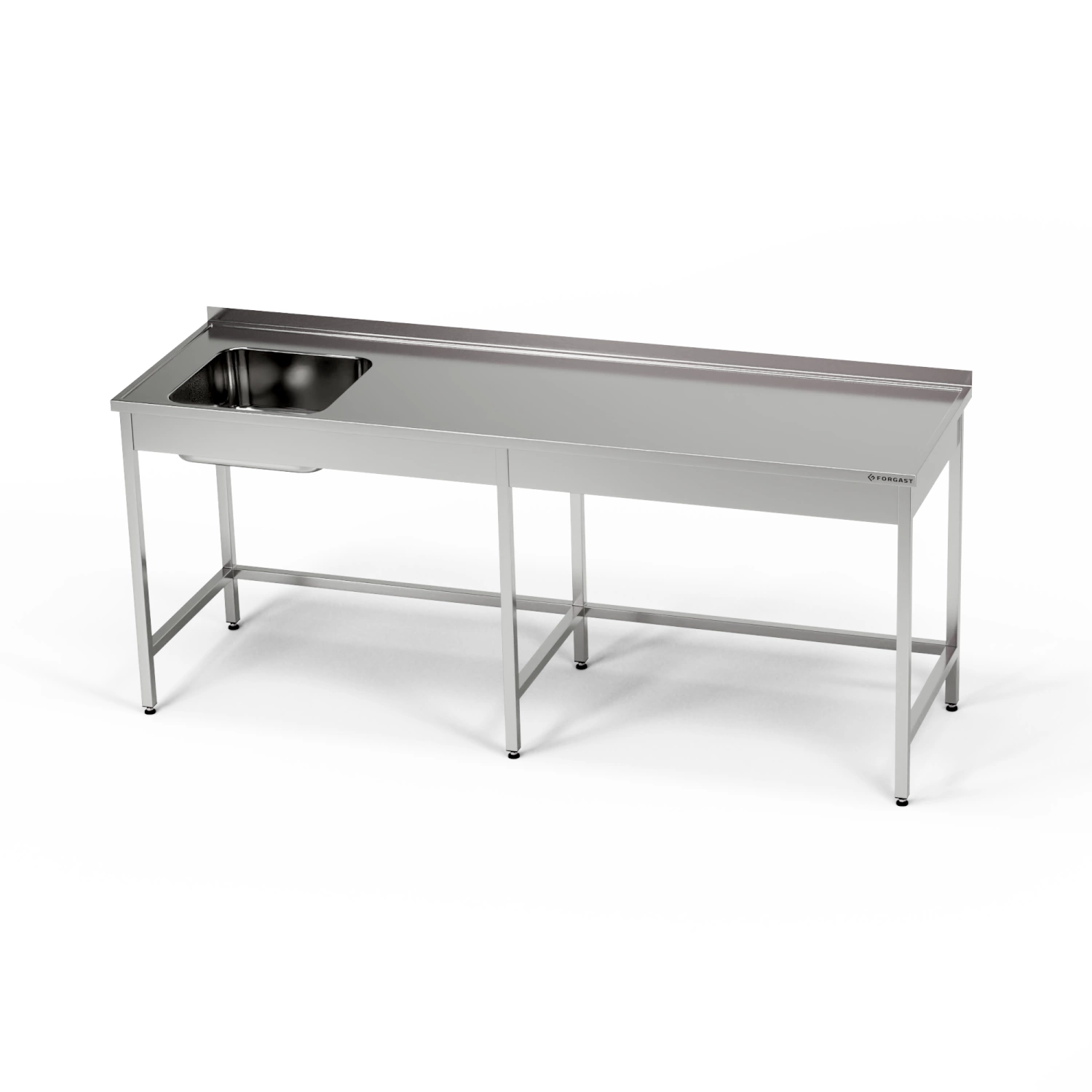 Nerezový stôl s jednokomorovým drezom 240x60x85 cm | FORGAST