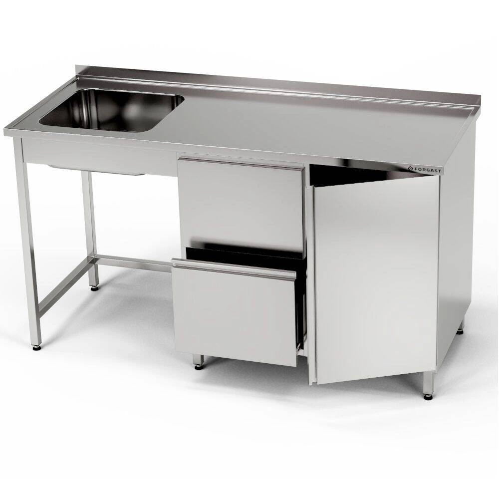 Nerezový stôl s umývadlom s 1 miskou, skrinka a zásuvkový blok 250x70x85 cm | FORGAST