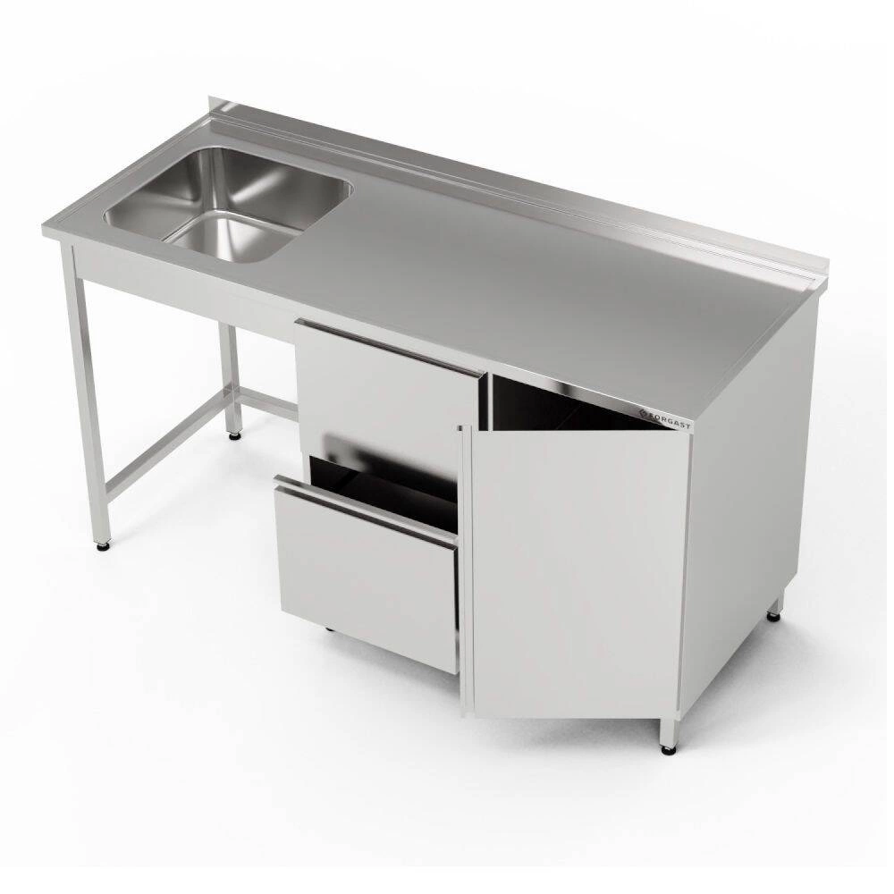 Nerezový stôl s 1-komorovým drezom a blokom zásuviek – funkčnosť a pohodlie