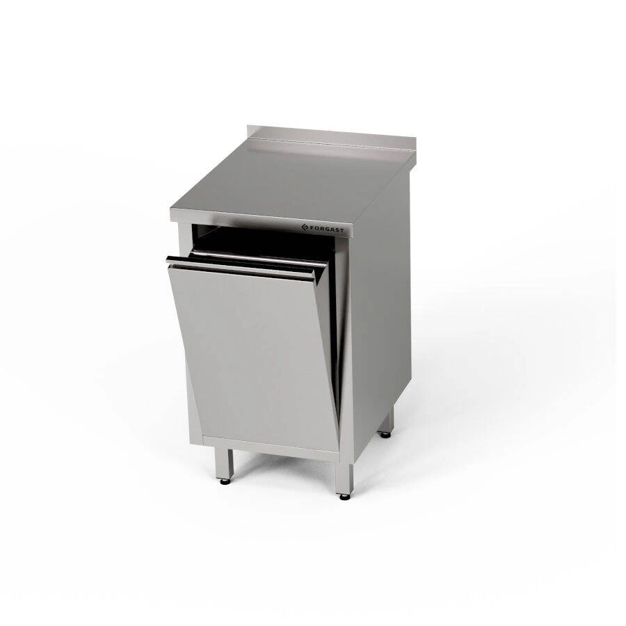 Stôl s výklopným košom z nehrdzavejúcej ocele J4 s rozmermi 50x70x85 cm.