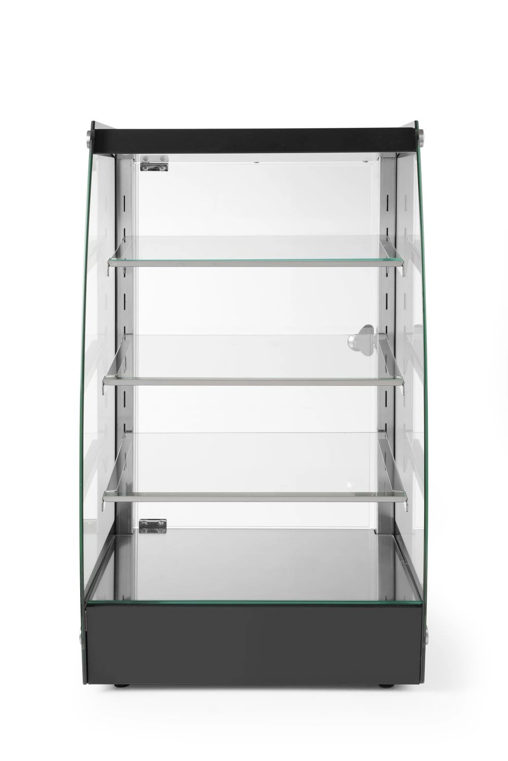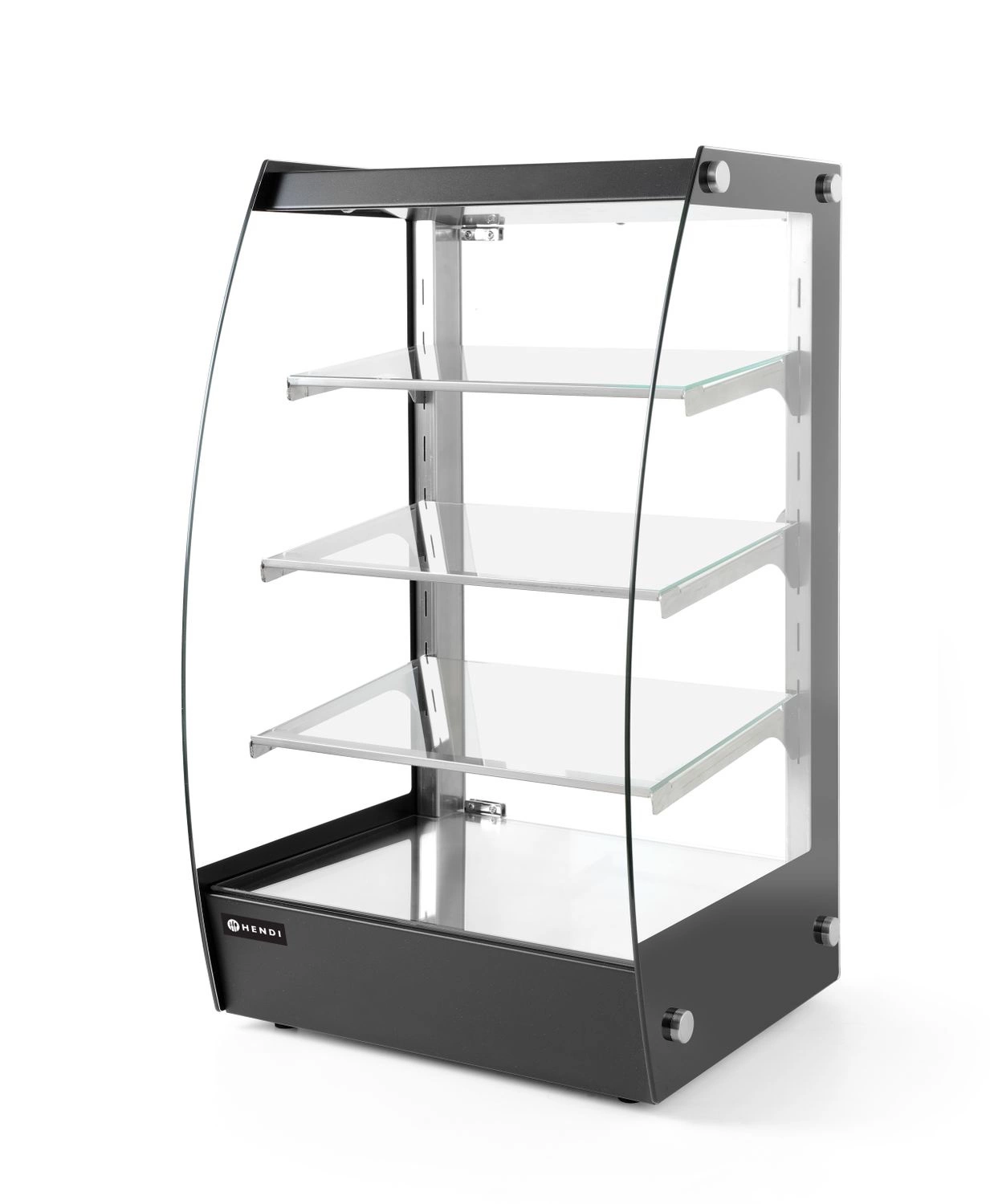 Napájanie 230 V a kompaktný dizajn znamenajú, že vitrínu možno postaviť prakticky kdekoľvek. Osvetlenie LED umiestnené na góth ovládané osvetleným spínačom. Kryt je vyrobený z nehrdzavejúcej ocele a tvrdeného bezpečnostného skla. Bočné sklo s hrúbkou 5 mm. Chýbajúce predné sklo umožňuje samoobsluhu. Praktický spodný výklenok s rozmermi 26x32x8,5 cm, napr. na uskladnenie výstavných zásob. 3 nastaviteľné sklenené police naklonené pod miernym uhlom smerom k zákazníkovi. 8 možných polôh sklenených políc.