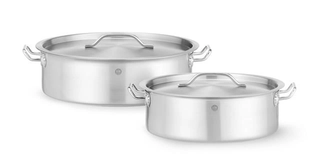 Tento profesionálny, nízky hrniec s pokrievkou značky HENDI je vyrobený z vysoko kvalitnej nehrdzavejúcej ocele. S objemom 15,8 l a širokým priemerom je toto univerzálne kuchynské náčinie určené na intenzívne používanie v gastronómii, jedálňach či hotelových kuchyniach. Zvlášť vyniká robustnou konštrukciou a odolnosťou voči vysokým teplotám, čo z neho robí ideálnu voľbu na prípravu veľkého množstva polievok, gulášov alebo dusenej zeleniny.