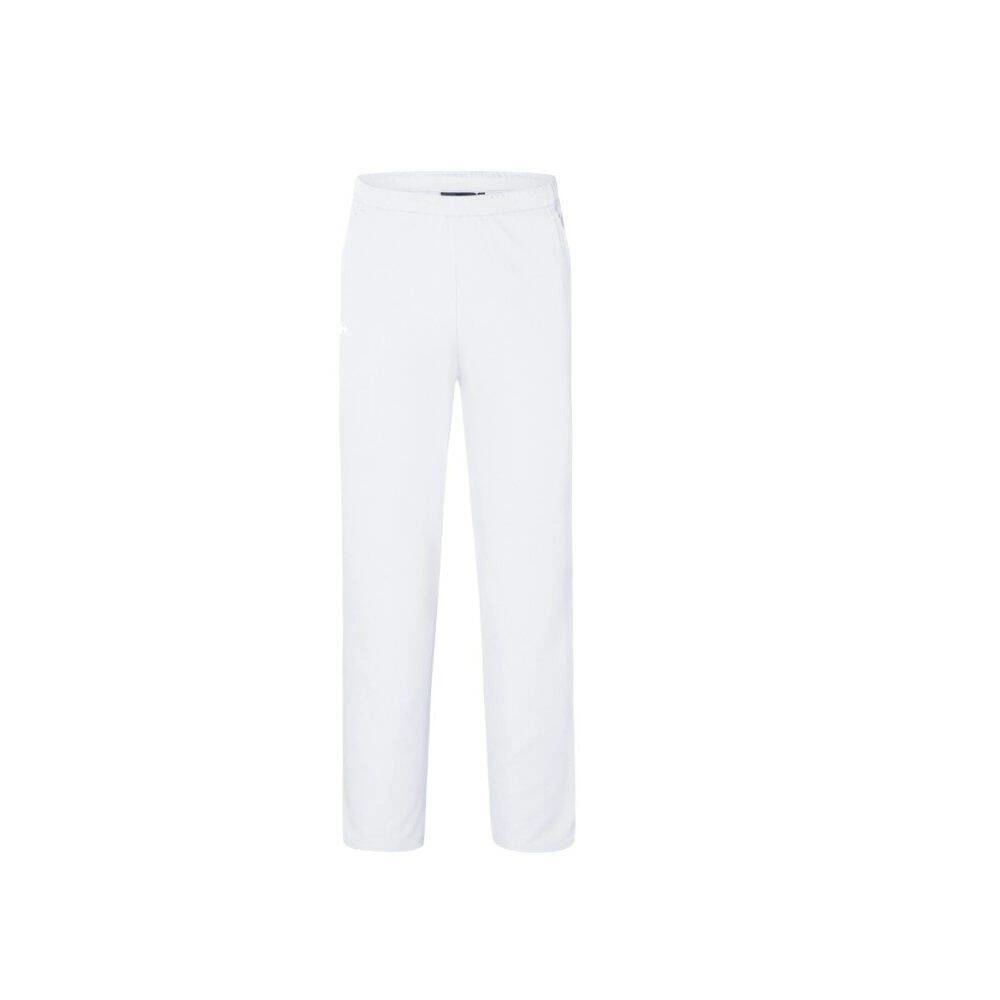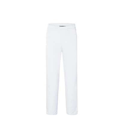 Nohavice Essential značky Karlowsky. Biela farba. Vyrobené zo 65 % polyesteru a 35 % bavlny. Pohodlné a odolné unisexové pracovné nohavice s elastickým pásom a šnúrkou na nastavenie veľkosti na jednoduché obliekanie. Nohavice s rovnými nohavicami. Nohavice majú 2 bočné vrecká a 1 našité vrecko vzadu. Ľahká tkanina poskytuje príjemný komfort pri nosení na každodennú prácu. Veľmi vysoká prateľnosť v 95°C, zafarbené na 60°C. Možno prať a žehliť. Nebieliť. Nohavice sú dostupné vo veľkostiach XS až 5XL.