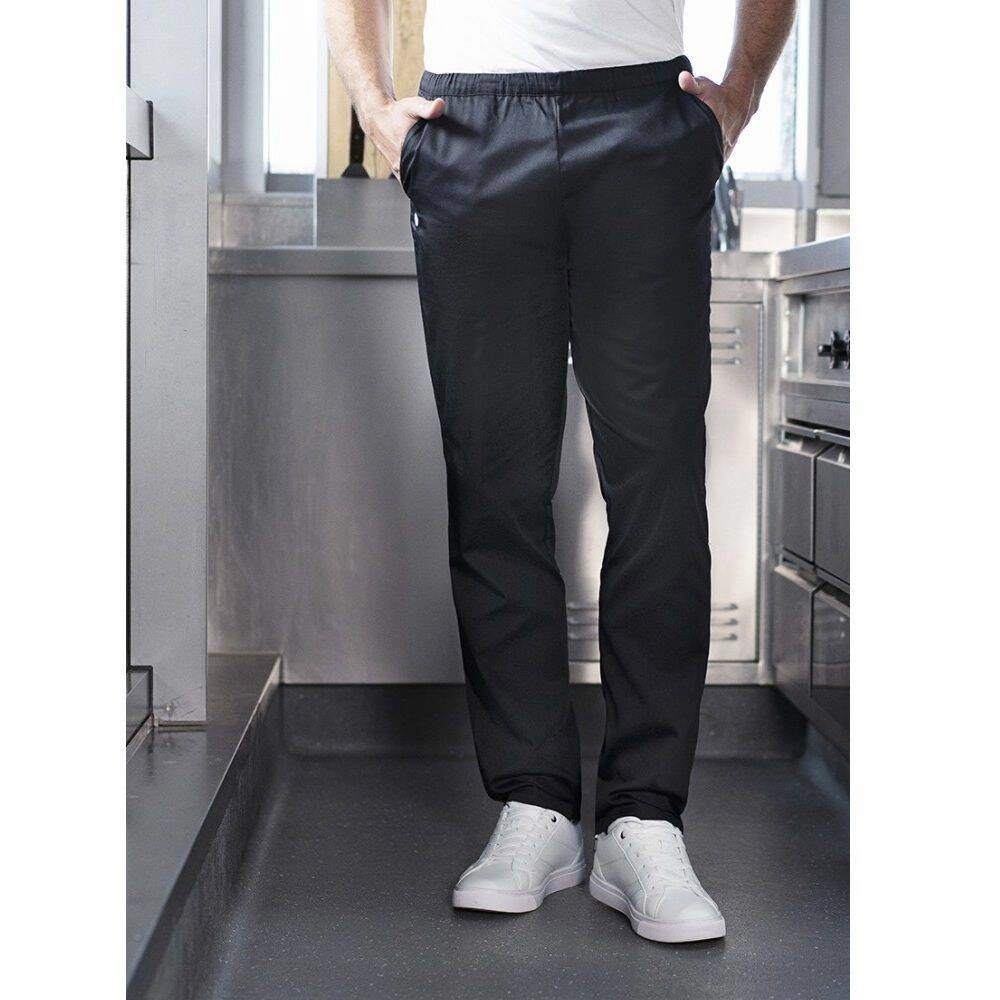 Základné slip-on nohavice značky Karlowsky. Čierna farba. Vyrobené zo 65 % polyesteru a 35 % bavlny. Pohodlné a odolné unisexové pracovné nohavice s elastickým pásom a šnúrkou na nastavenie veľkosti na jednoduché obliekanie. Nohavice s rovnými nohavicami. Nohavice majú 2 bočné vrecká a 1 našité vrecko vzadu. Ľahká tkanina poskytuje príjemný komfort pri nosení na každodennú prácu. Veľmi vysoká pracia schopnosť v 95°C, zafarbené na 60°C. Možno prať a žehliť. Nebieliť. Nohavice sú dostupné vo veľkostiach XS až 5XL.