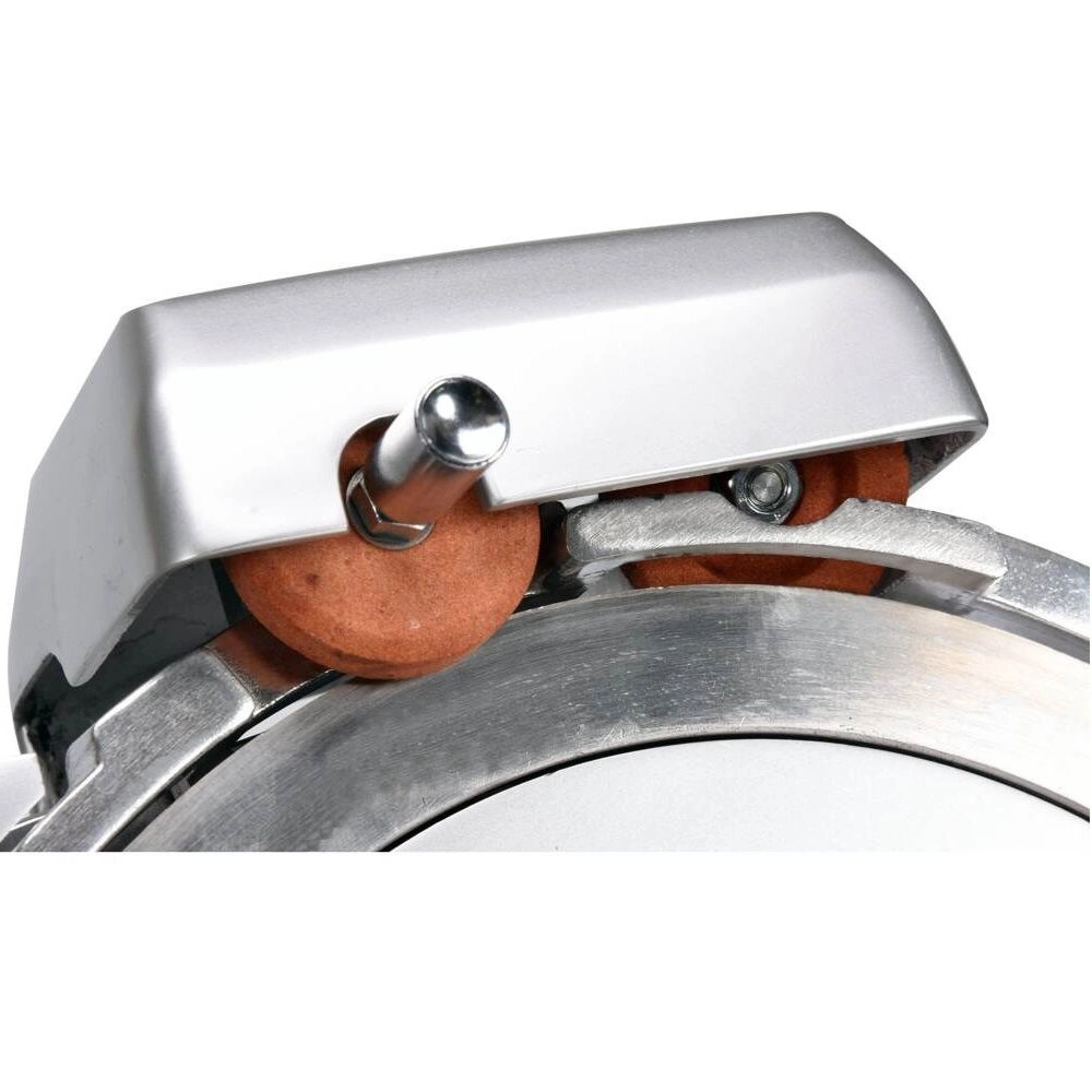 Zabudovaný pó³-automatický ostrič umožňuje rýchle naostrenie rezného noža bez nutnosti jeho vybratia, čo prispieva k efektívnosti používania stroja. Bezpečnosť bola posunutá na vyššiu úroveň vďaka spínaču odolnému proti striekajúcej vode, ktorý chráni pred úrazom elektrickým prúdom počas prevádzky aj pri čistení stroja. Dodatočný ochranný kryt rezacieho kotúča a špeciálny priehľadný kryt nad reznou zónou minimalizujú riziko poranenia počas používania. Stabilitu zariadenia počas práce zabezpečujú špeciálne protišmykové nožičky, ktoré zvyšujú bezpečnosť a presnosť pri používaní krájača YATO. Tento moderný prístroj nielen uľahčuje prácu, ale zabezpečuje aj bezpečnosť a hygienu v profesionálnom kulinárskom prostredí.