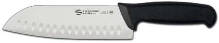 Nôž Supra Santoku od spoločnosti Ambrogio Sanelli je ideálnym nástrojom pre profesionálnych kuchárov a je ideálny na krájanie, sekanie a porciovanie surovín. Vďaka drážkovanej čepeli a ergonomickej rukoväti ponúka jednoduché použitie a dokonalé výsledky v každej kuchyni.