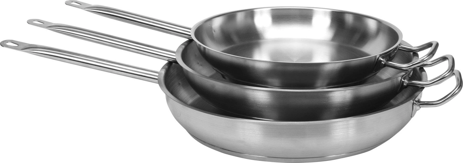 • Nerezová oceľ 21/0 – tento materiál zaručuje odolnosť voči korózii, vysokým teplotám a ľahkú údržbu čistoty. Panvica sa nedeformuje ani pri intenzívnom používaní, vďaka čomu je spoľahlivá v každej profesionálnej kuchyni.