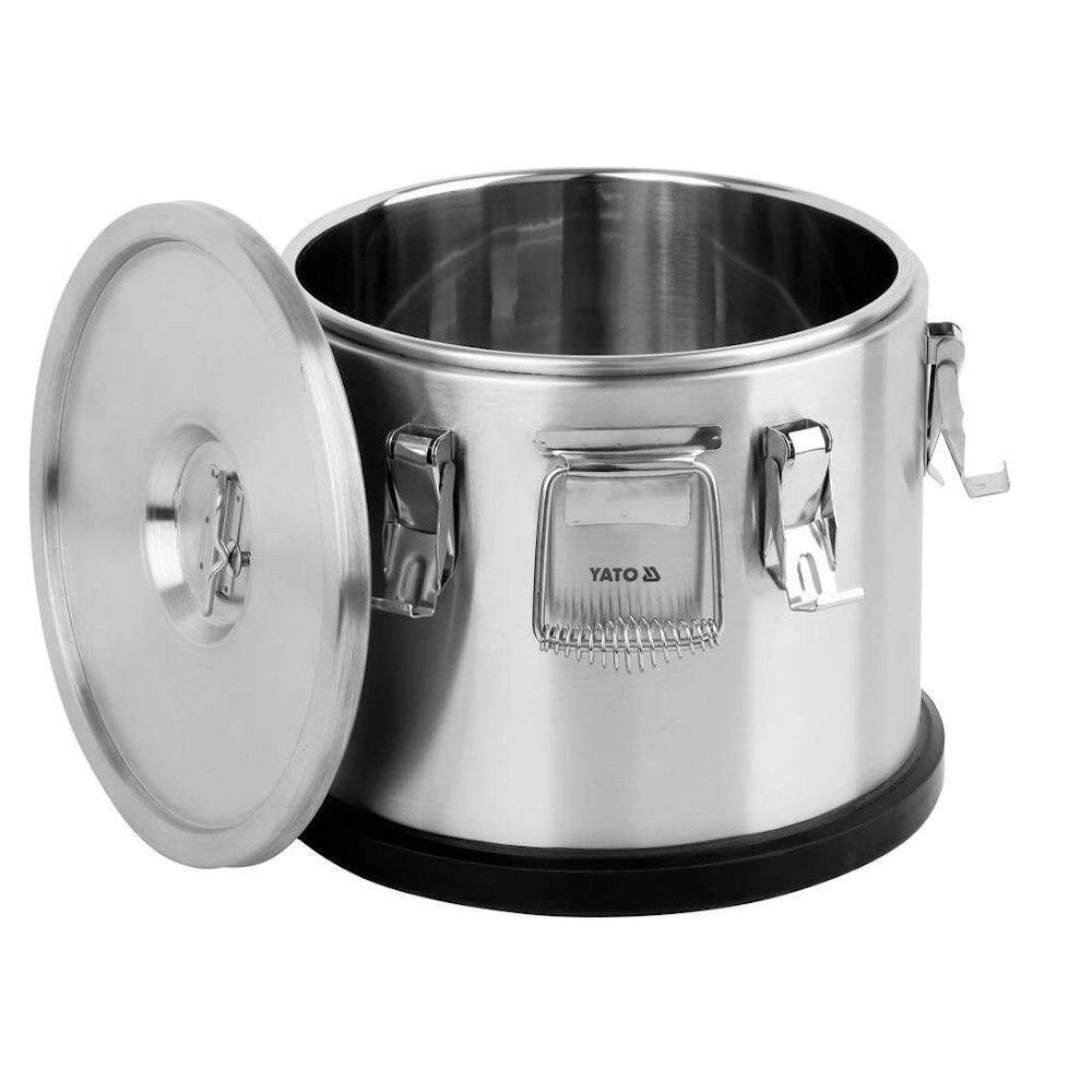 Termos na prepravu potravín značky YATO s objemom 15 l. Plášť aj vnútro sú vyrobené z vysoko kvalitnej nehrdzavejúcej ocele. Veľmi dobrá tepelná izolácia vďaka priestoru medzi stenami vyplnenému špeciálnym izolačným materiálom. Strata tepla pri horúcich pokrmoch je len 5 °C počas 4 hodín, pri studenom obsahu teplota stúpne o 3 °C.