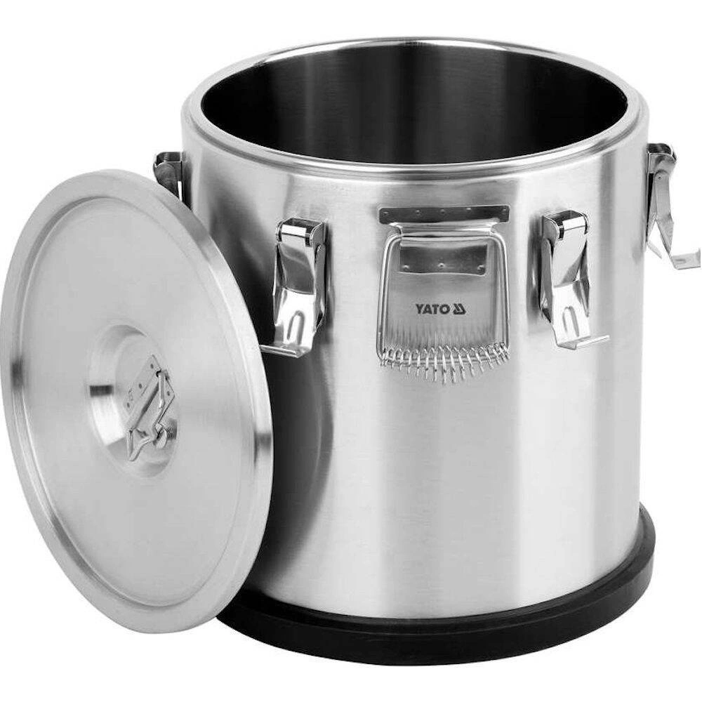 Termos na prepravu potravín značky YATO s objemom 20 l. Plášť aj vnútro sú vyrobené z vysoko kvalitnej nehrdzavejúcej ocele. Veľmi dobrá tepelná izolácia vďaka priestoru medzi stenami, ktorý je vyplnený špeciálnym izolačným materiálom. Strata tepla pri horúcich pokrmoch je len 5 °C počas 4 hodín, pri studenom obsahu teplota stúpne o 3 °C.
