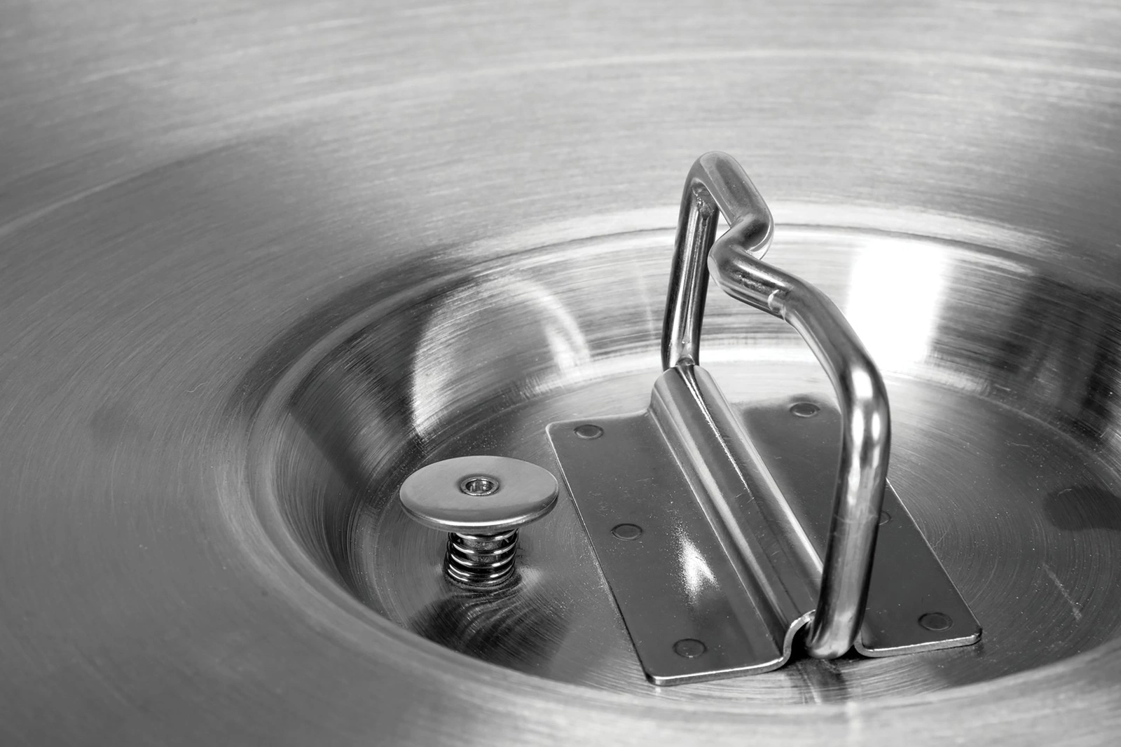 Veko je uzatvárané na 6 západiek, má masívne rukoväte uľahčujúce prenášanie a dekompresný ventil, ktorý zabraňuje prisatiu veka počas prepravy horúcich produktov. |